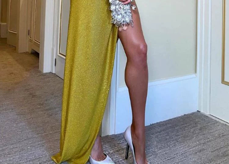 2021 Summer Sexy Hip-Covering Long Party Dresses Bronze Printing Evening Gown