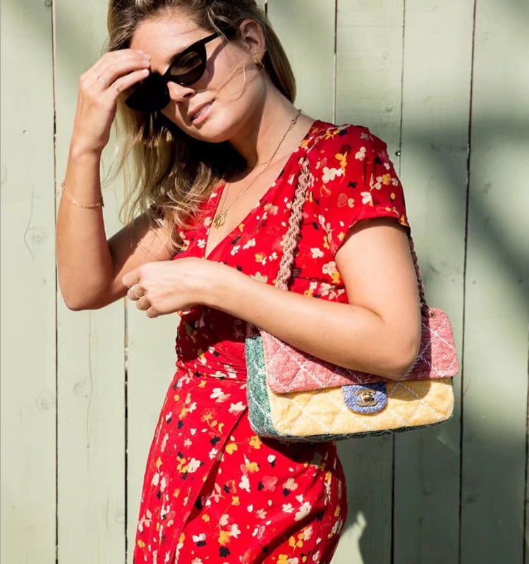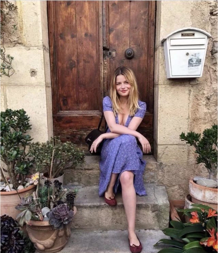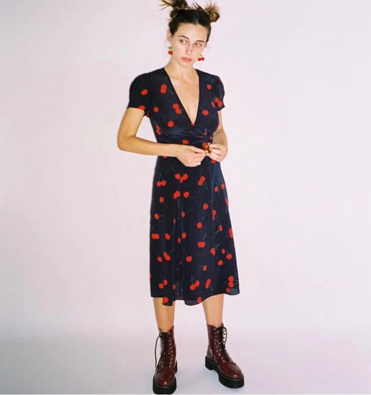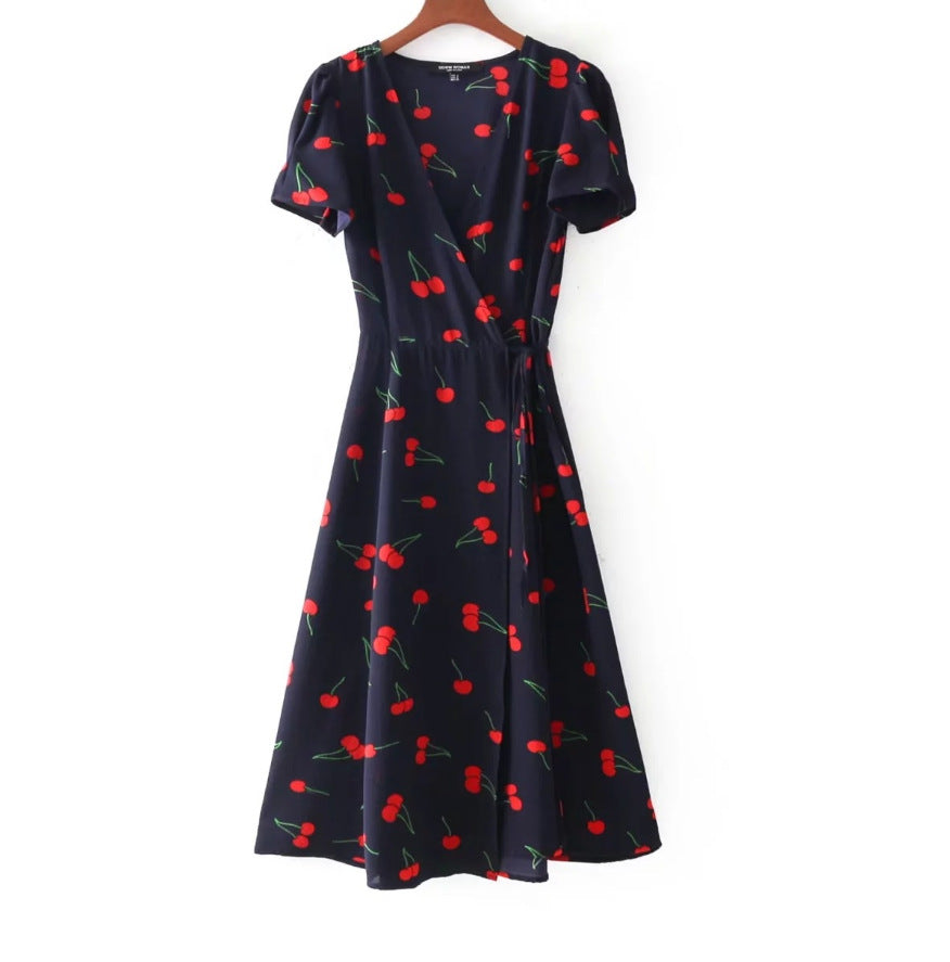 2023 Summer Women's Clothing Print Floral Puff Sleeve Wrap V Neck Dress Printed V-Neck Dress