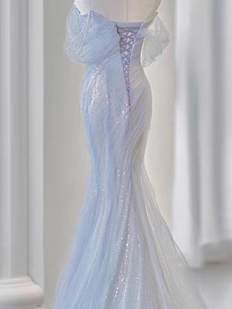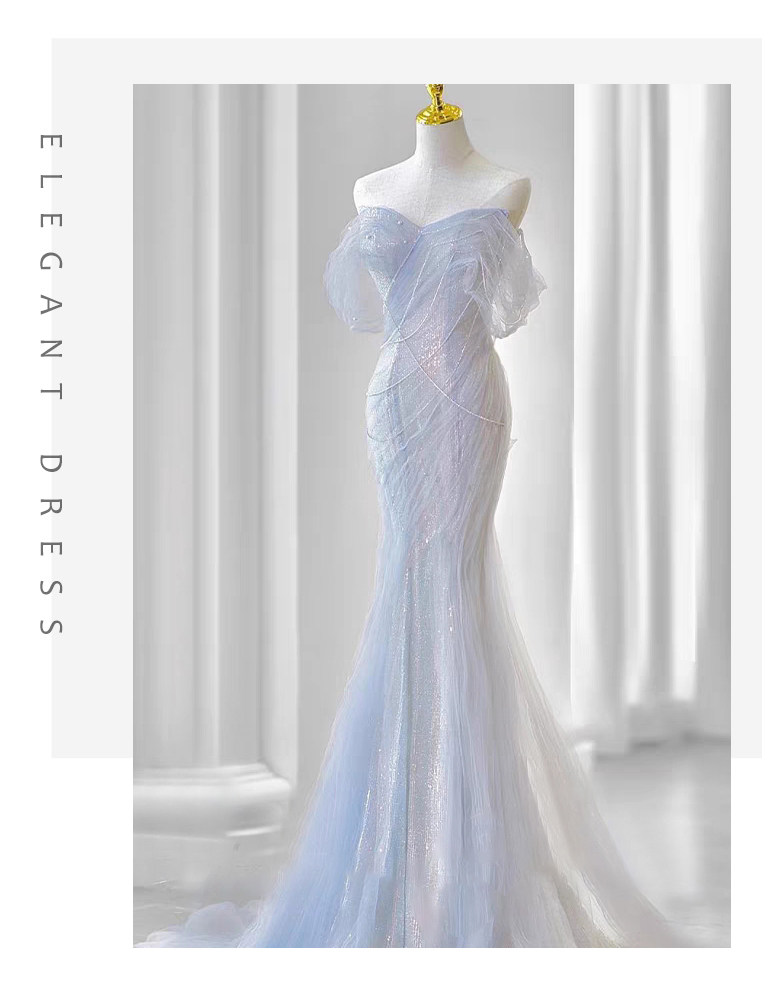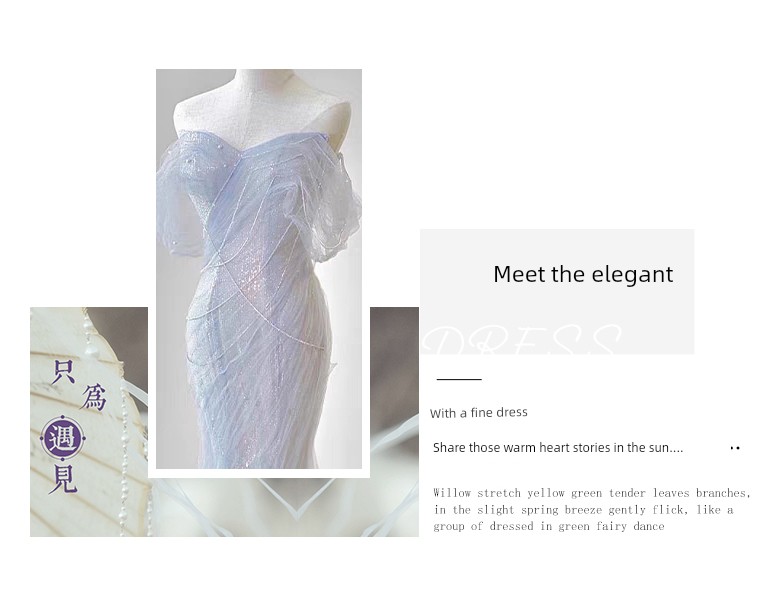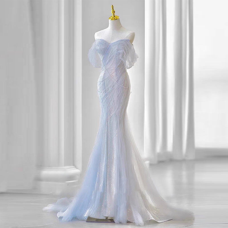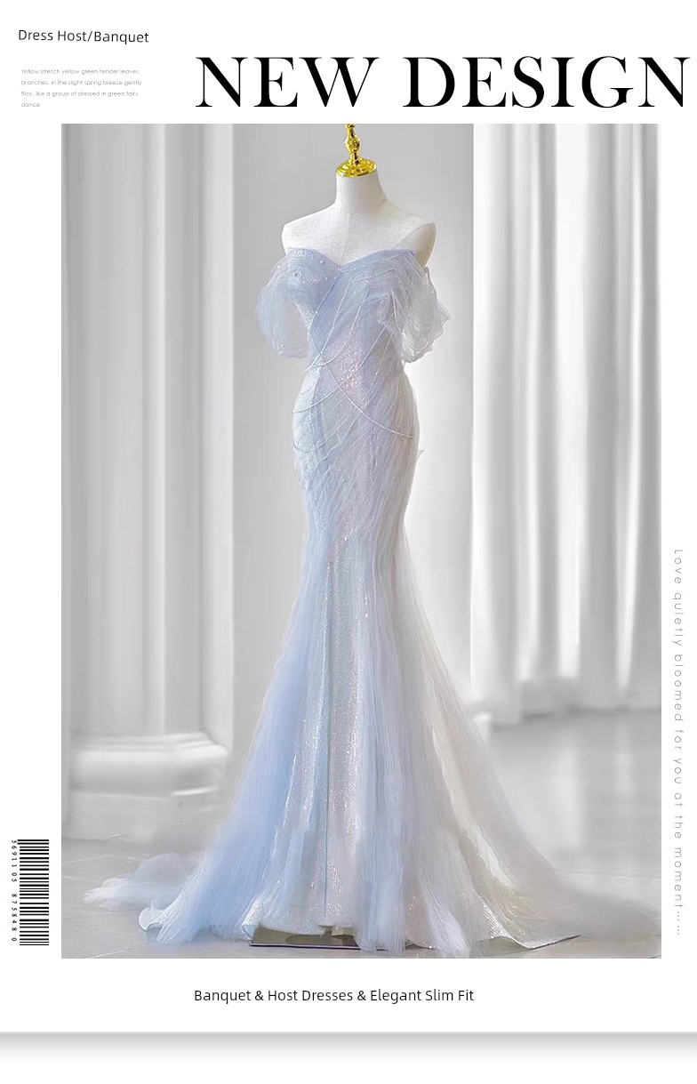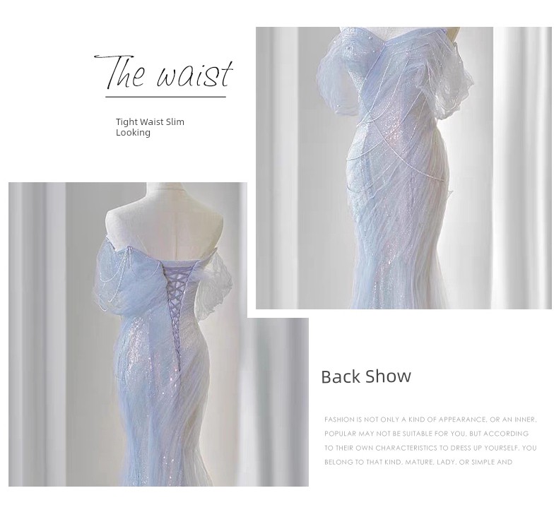 Heavy Industry Tube Top Evening Dress 2023 New French Style Fancy Waist-Controlled Fishtail Small Tail Banquet Host Dress