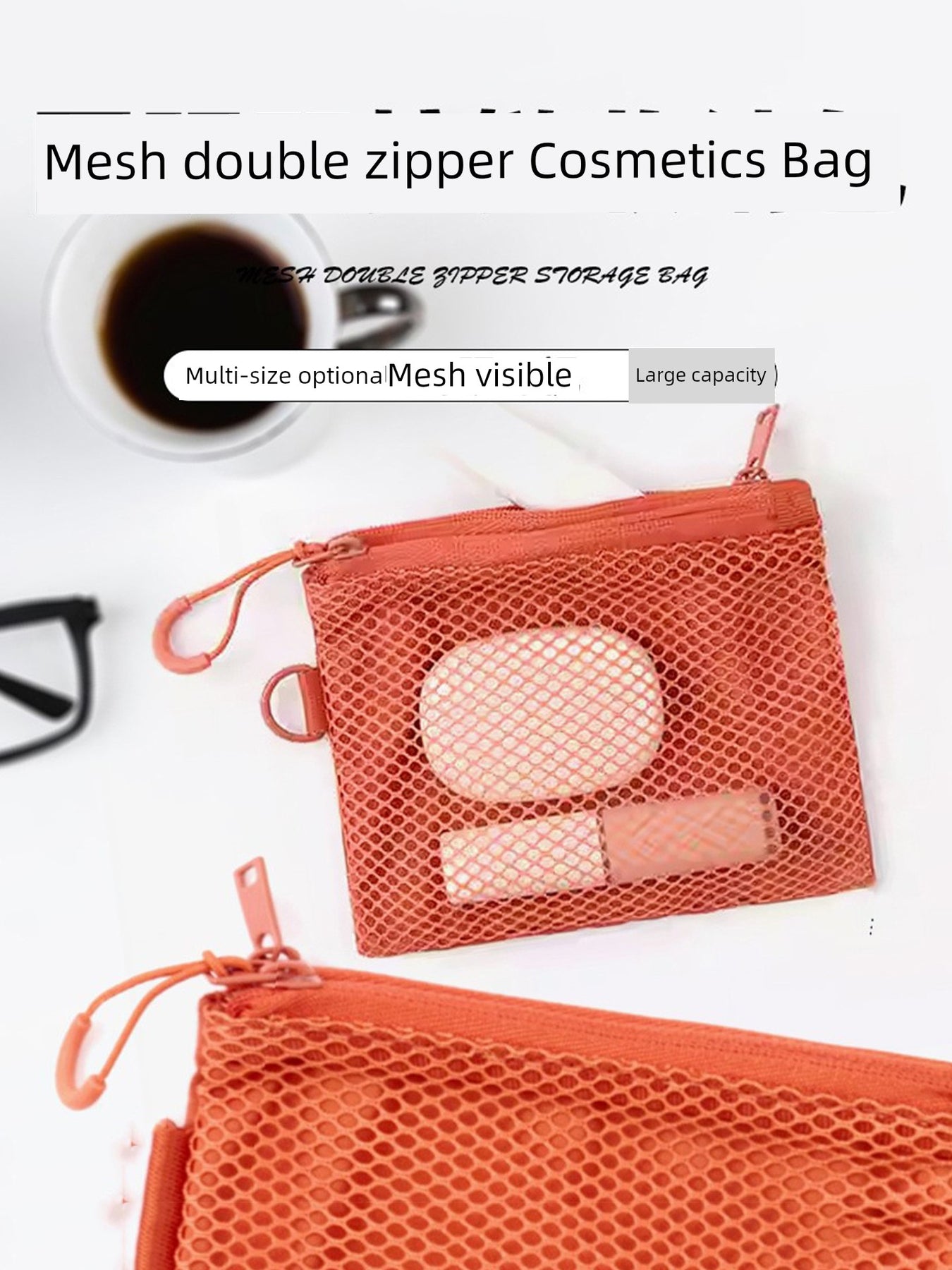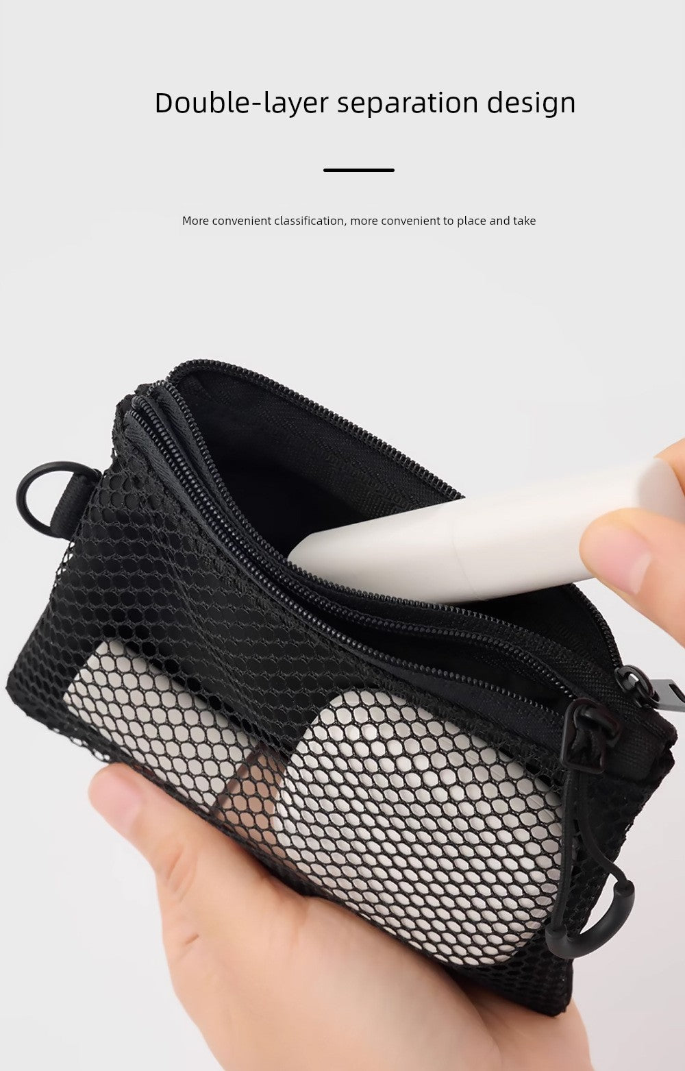 Japanese Style Export Double Zipper Bag Mesh Mobile Phone Bag Cosmetics Bag Net Pocket Normcore Travel Small Waste Bag Coin Purse Card Holder
