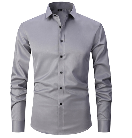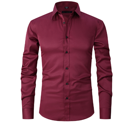Men Dress Shirt Slim Long Sleeve Formal Social Anti-Wrinkle