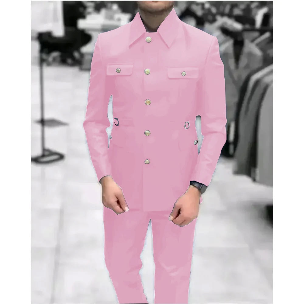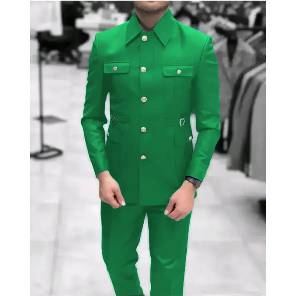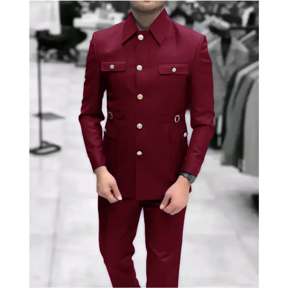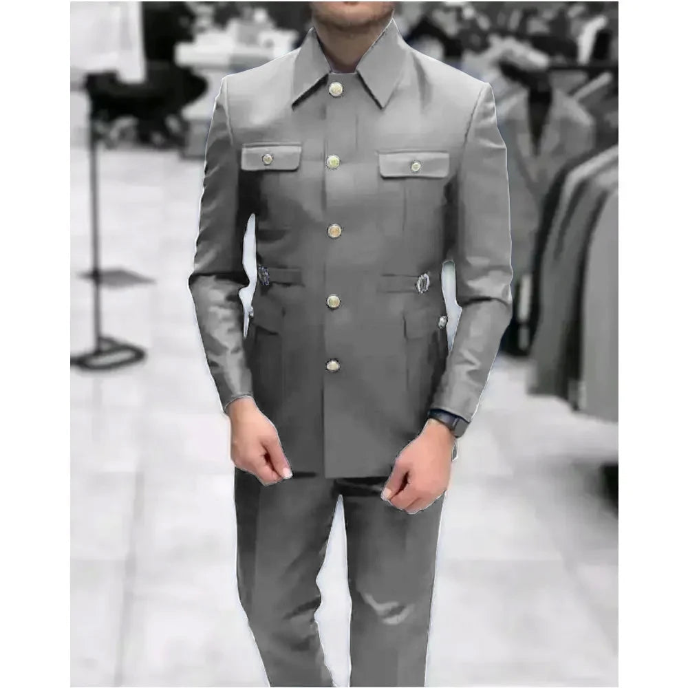 Men's Stand Collar Chinese Style Elegant Suits For Men Slim Fit Formal Groom Tuxedos Prom2 Pcs Classic Male Blazer Costume Homme