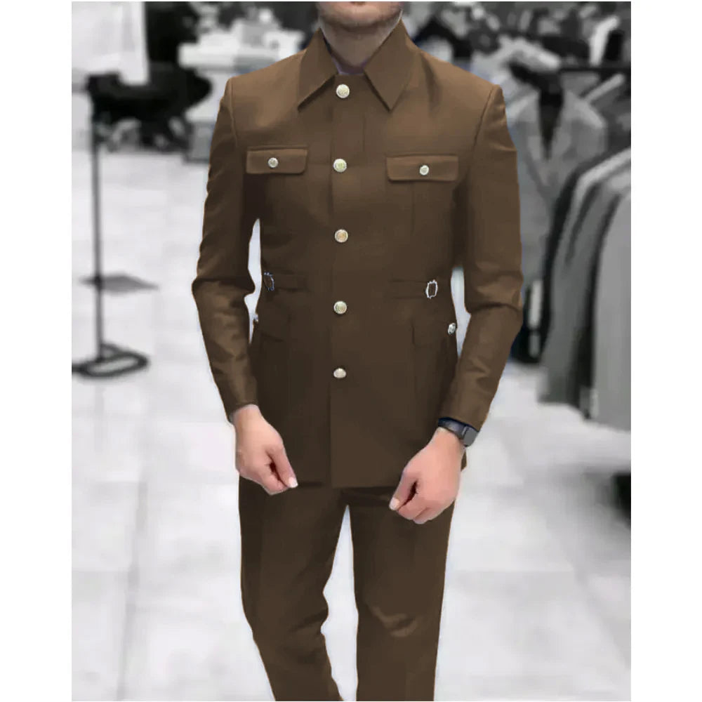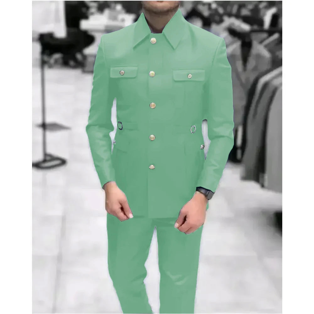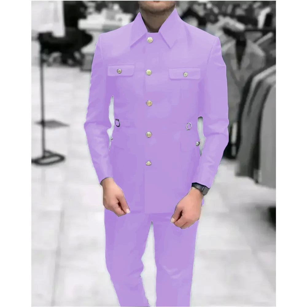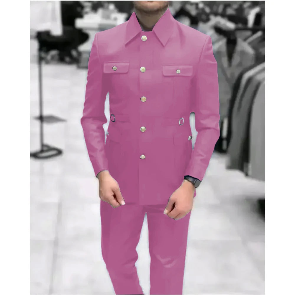 Men's Stand Collar Chinese Style Elegant Suits For Men Slim Fit Formal Groom Tuxedos Prom2 Pcs Classic Male Blazer Costume Homme