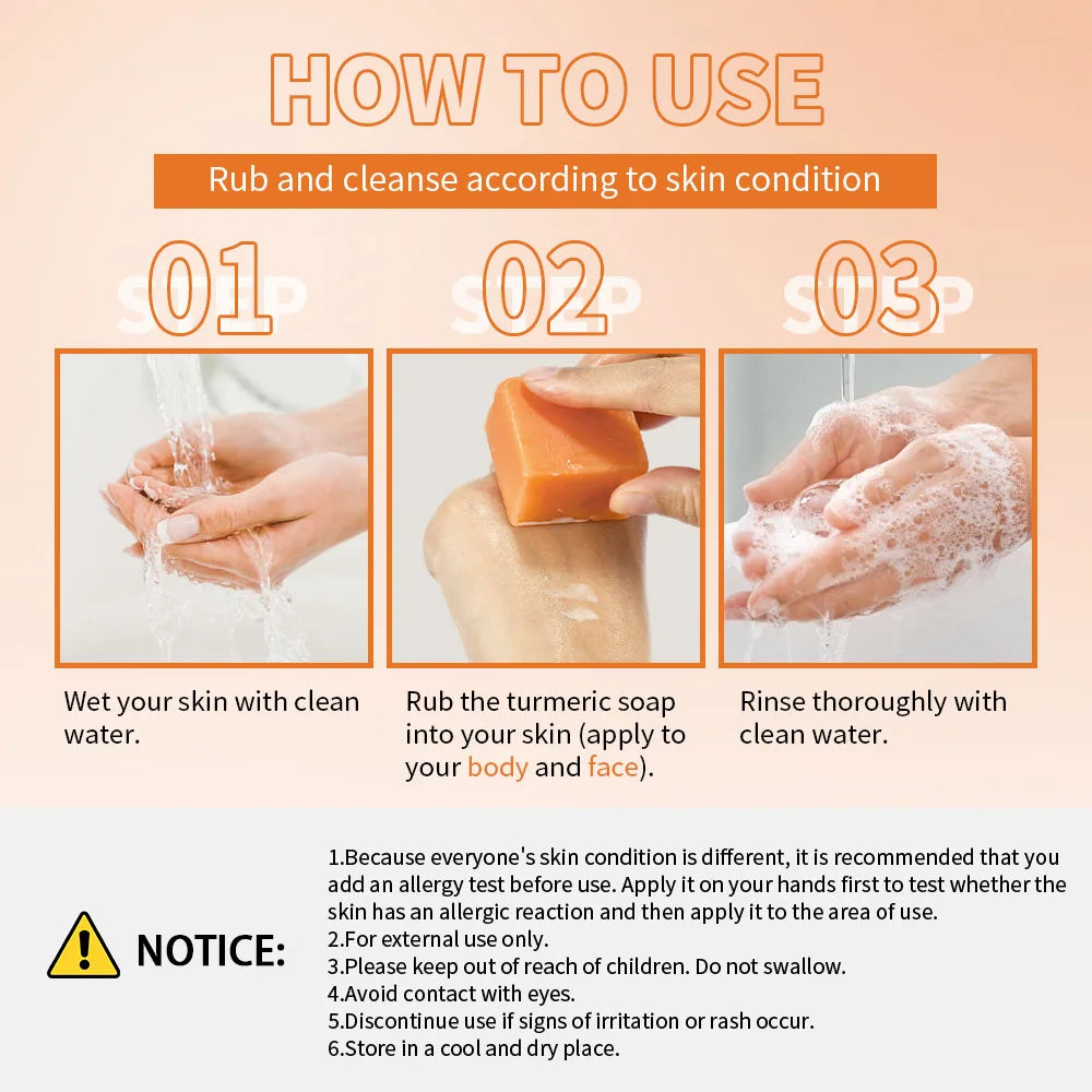 Natural Hand Made Turmeric Soap Brightening Body Cleanser for Face Underarm Legs Lightens Dark Areas Gentle Skin Care