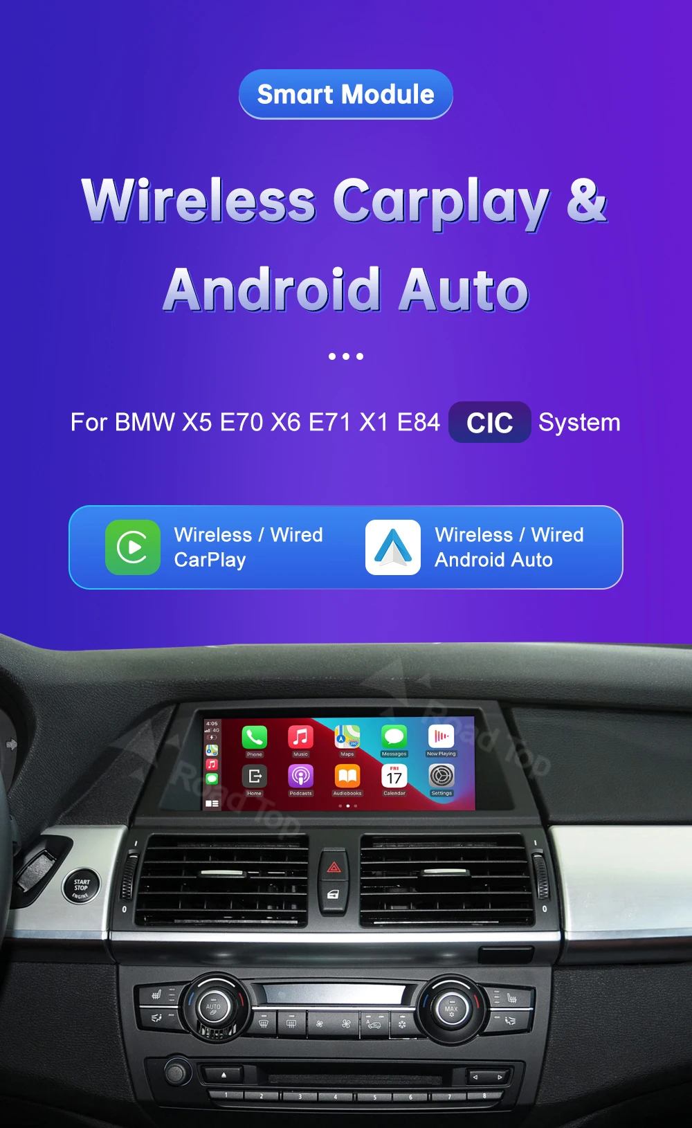 Wireless CarPlay for BMW CIC System X5 E70 X6 E71 2011-2013 X1 E84 2009-2015 with Android Auto Mirror Link AirPlay