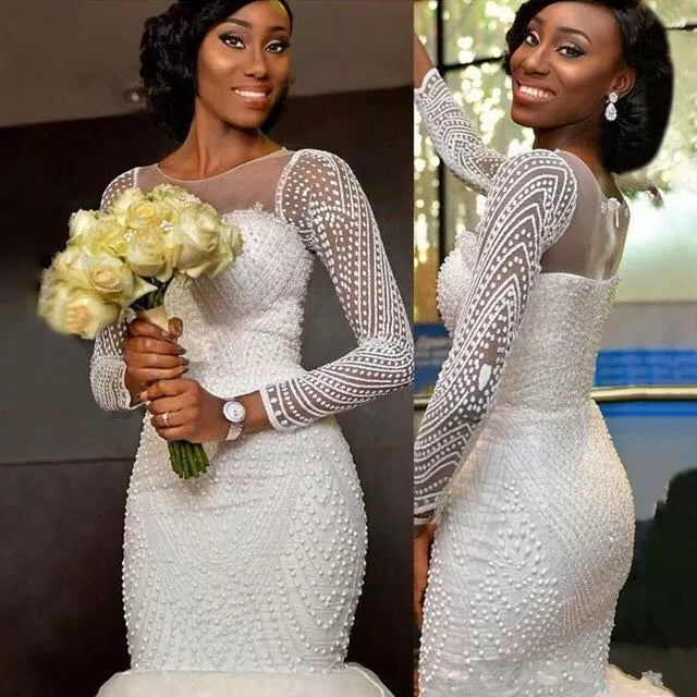 South African Long Sleeves Wedding Dresses Mermaid De Novia
