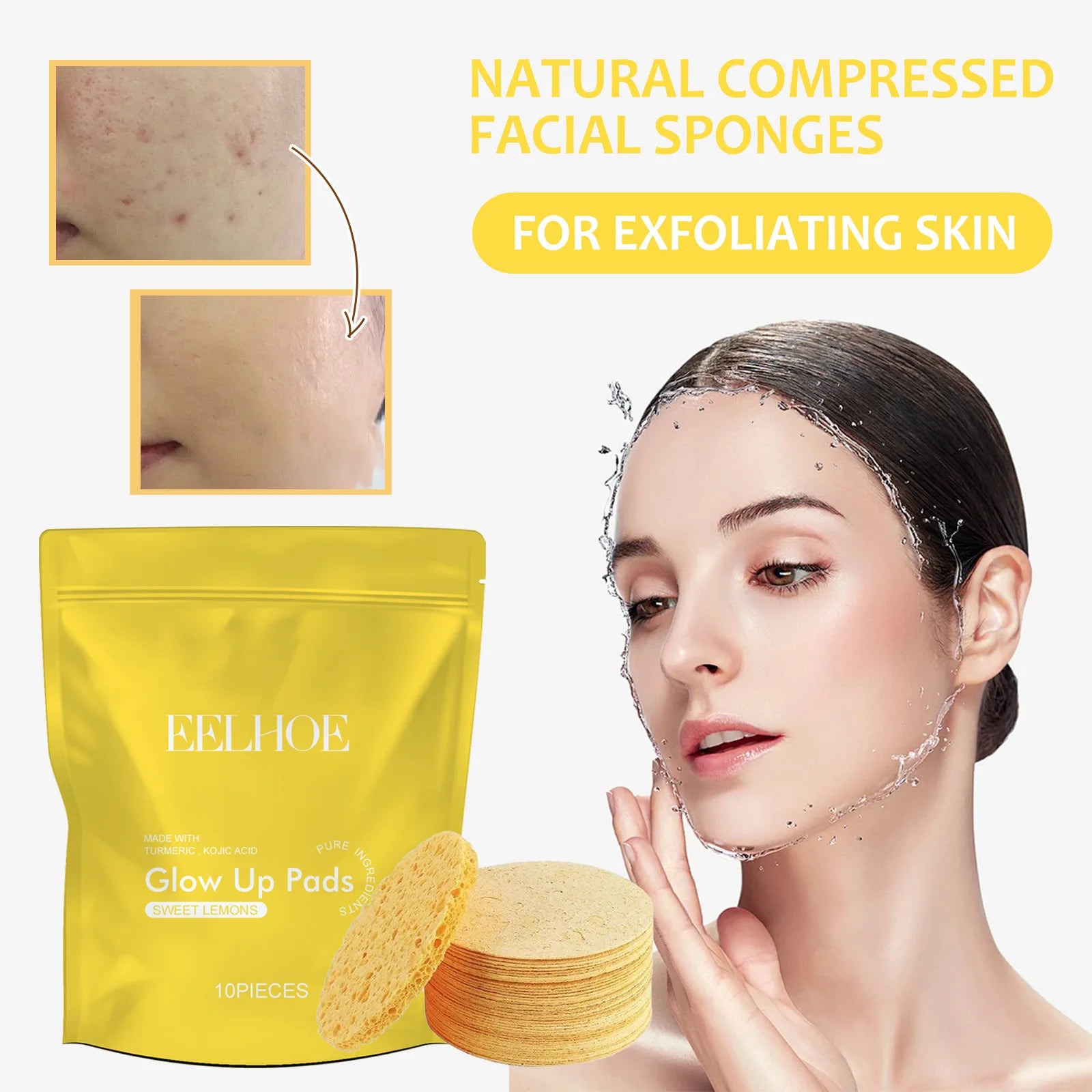 Turmeric Kojic Acid Cleansing Pads Exfoliating Pads Facial Sponges Removes Dirt Cleansing Exfoliating Daily Cleansing Skin Care