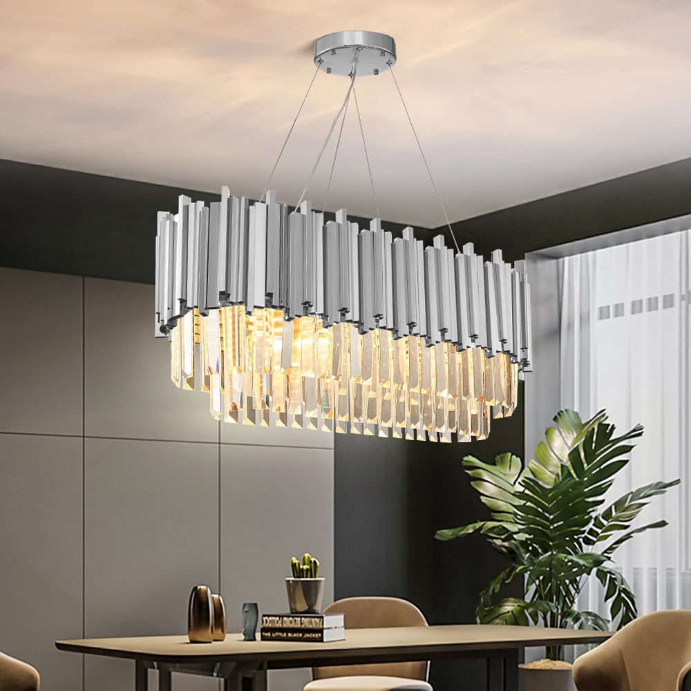 Dining room modern crystal chandelier oval design home decor hang light fixture luxury kitchen island rectangle led cristal lamp