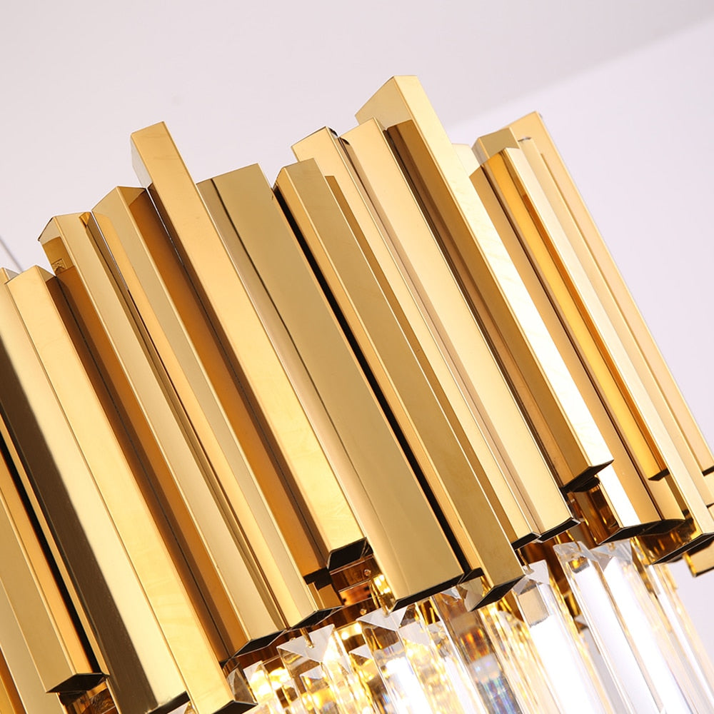 A: the chandelier is combination of stainless steel, squar tube and finest K9 crystal