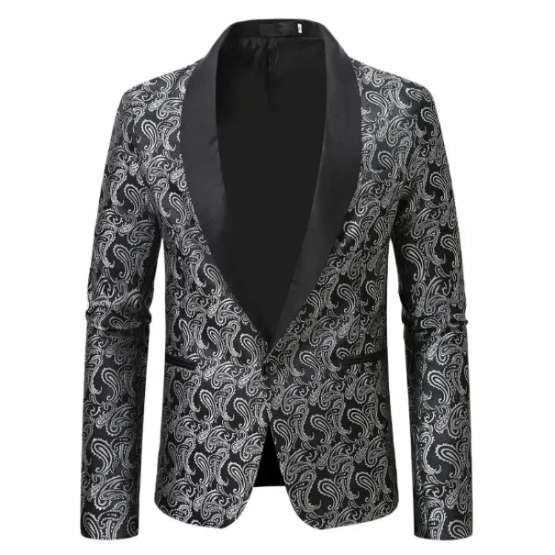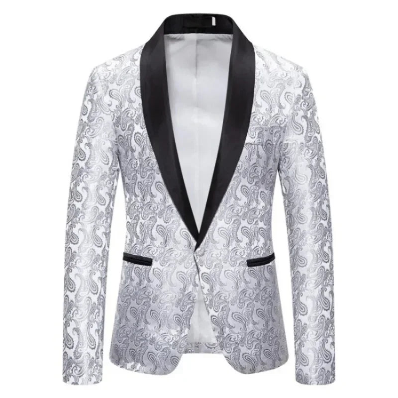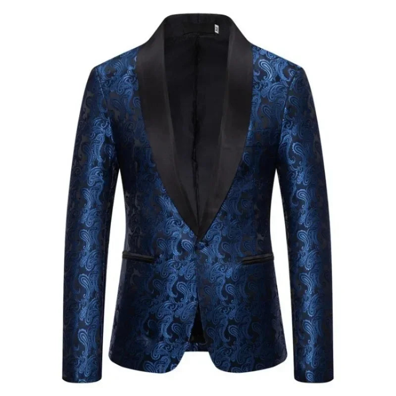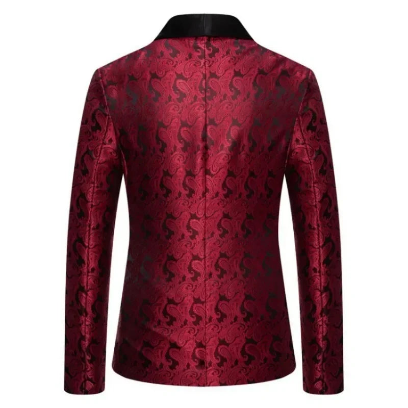 2025 Wedding Men's Blazer Jackets Red Cashew Flower Men Suit Coat Party Slim Fit Stylish One Button Long Sleeved Club Wear Suit