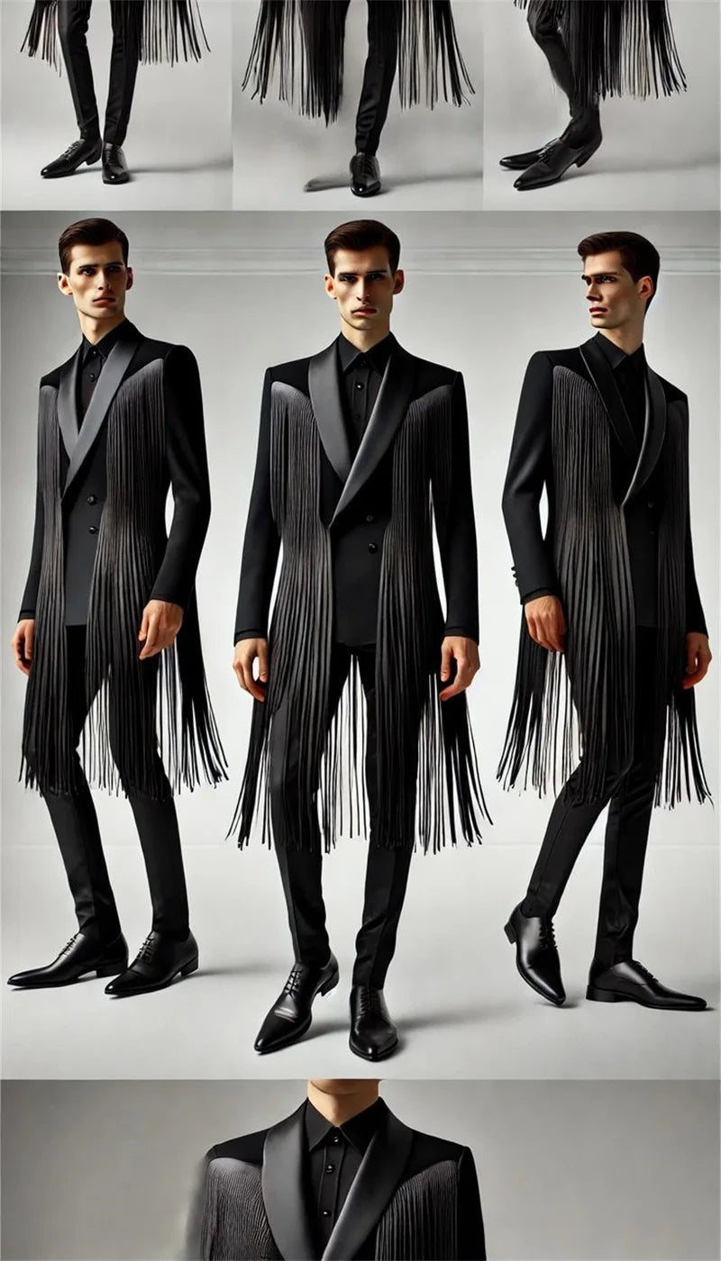 Black Tassel Men Suit Set 2 Piece Blazer+Pants Trousers Customized Cotton Formal Office Jacket Prom Wedding Tuxedos Coat Outfit