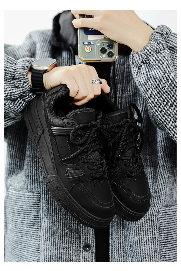 Thick Sole Pure Black Japanese Leisure Niche Style Original Men's Shoes