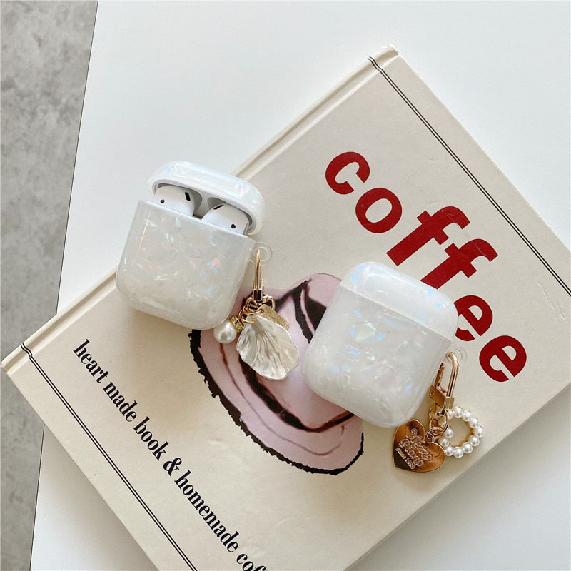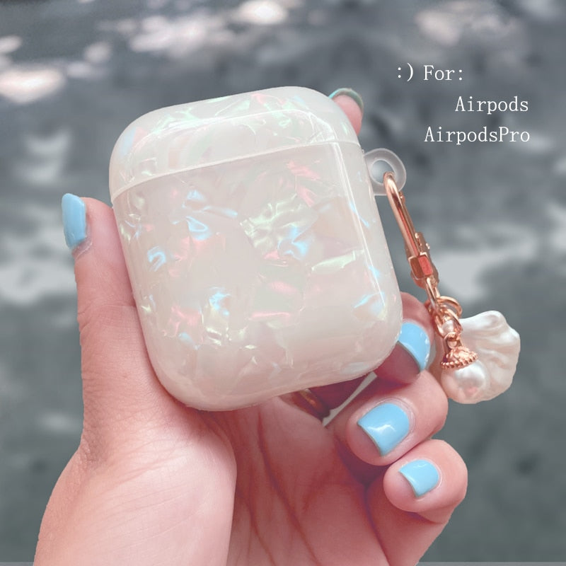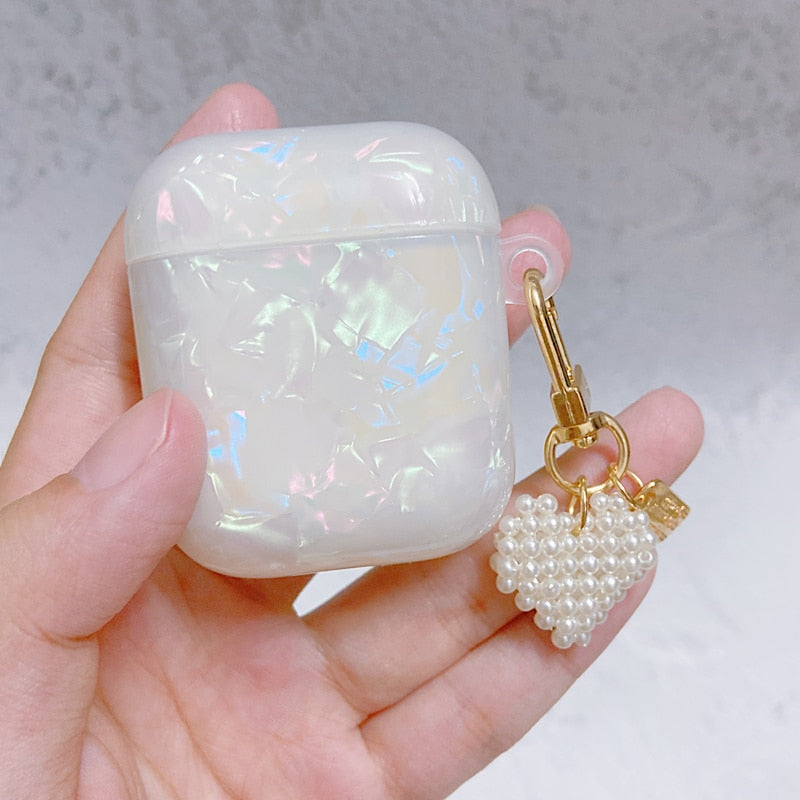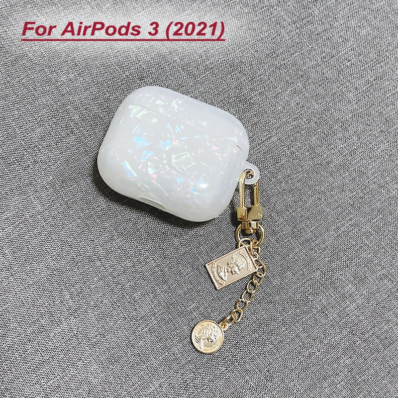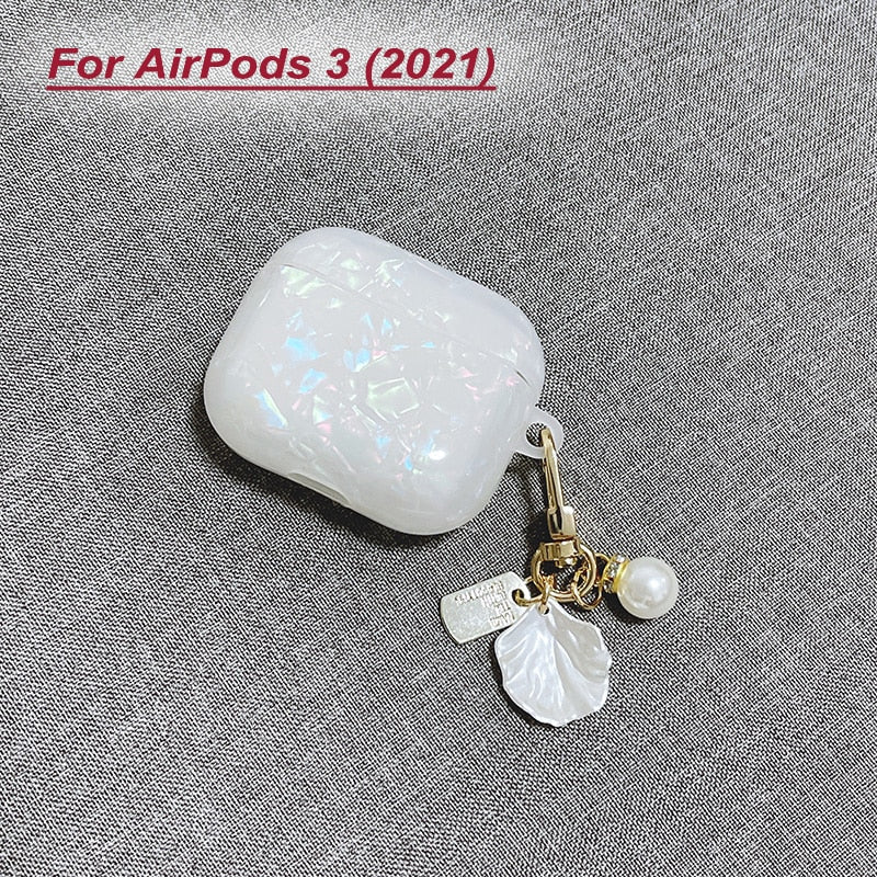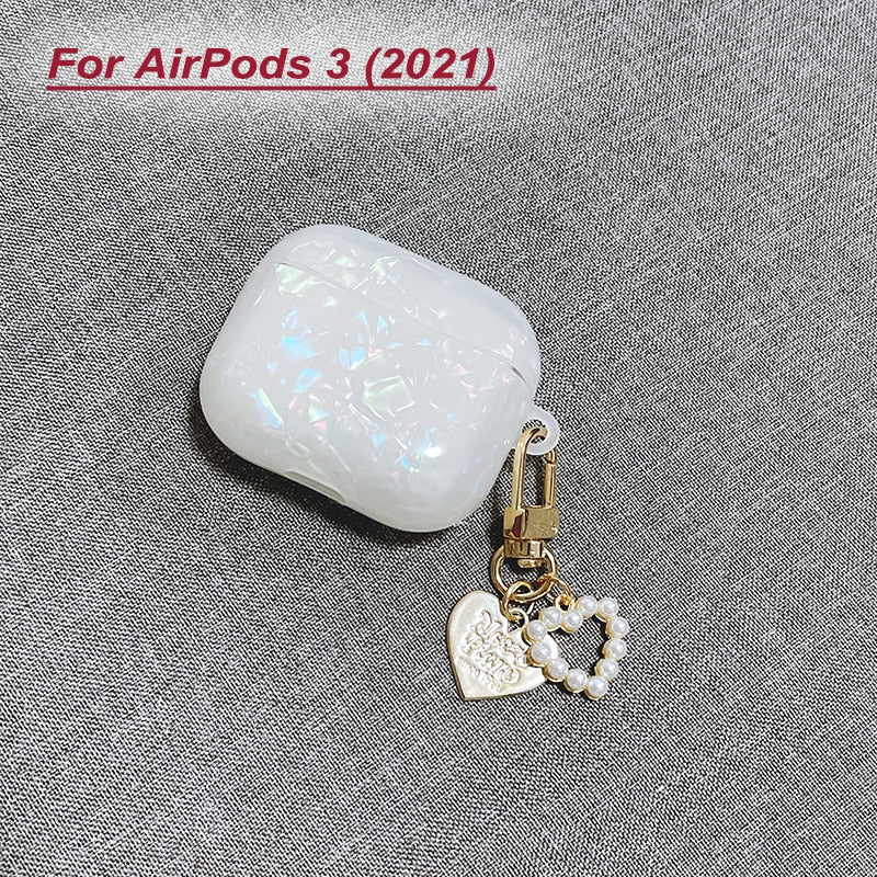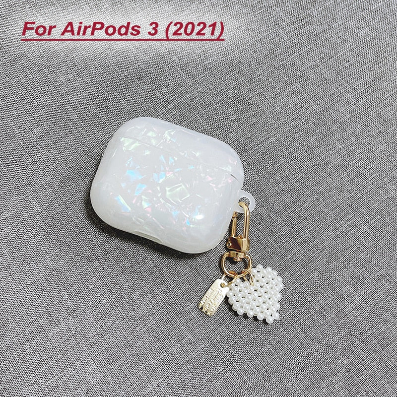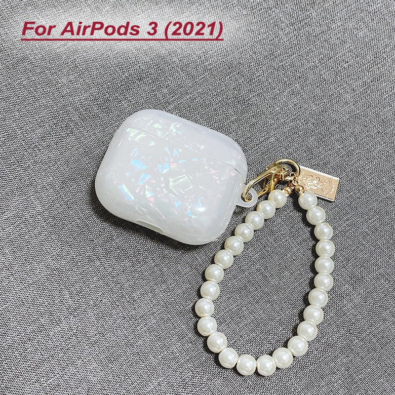 Dreamy White Glossy Shell Pearl Bracelet Keychain Earphone Soft case For Apple Airpods 1 2 Pro 3 Wireless Headset Box Cover