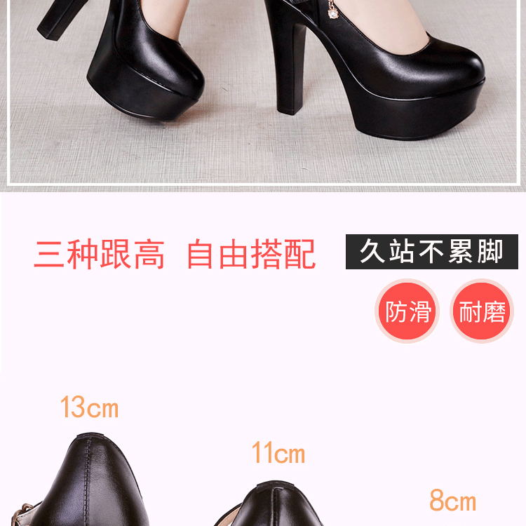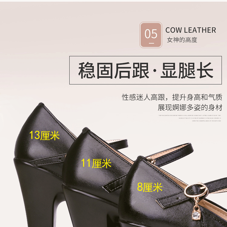 13cm First Layer Cowhide Ultra High Heel Cheongsam Catwalk Shoes round Head Large and Small Size Low-Cut Authentic Leather T Table Women's Work Shoes