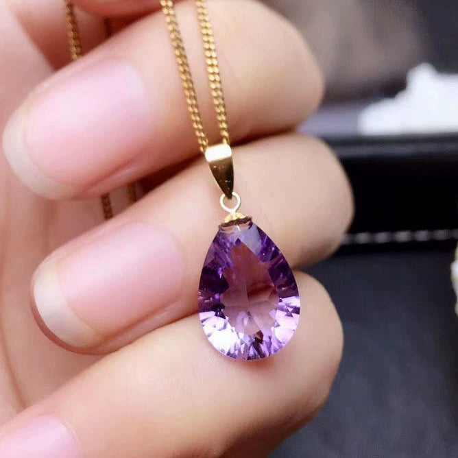 18K Gold Gold Rose Gold Ear Hook Long Water Drop Amethyst Earrings Women&