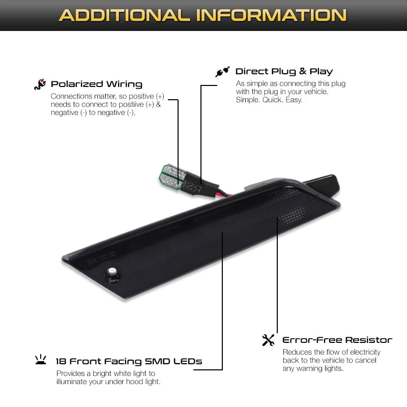 This page features 1Pair (2 Pieces) Smoked Lens Amber/White LED Front Side Marker Indicator Lights For 1979-1986 Ford Mustang