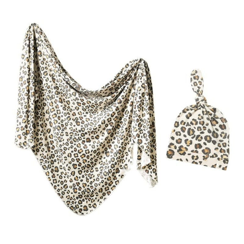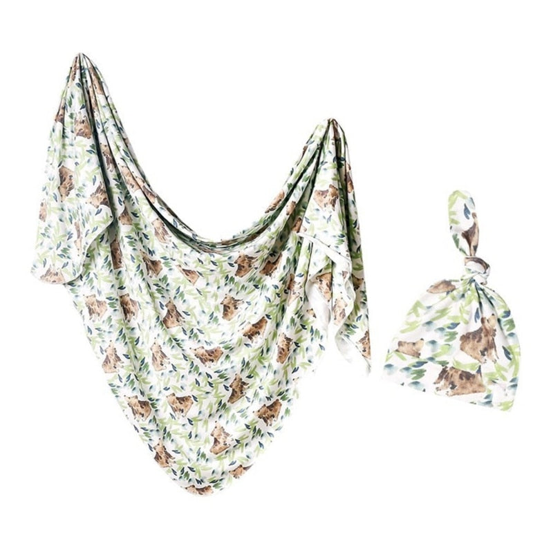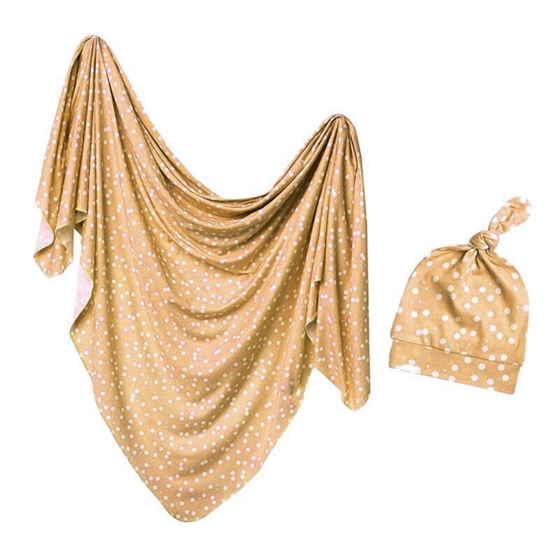 2 Pcs/Set Cotton Newborn Sleeping Bag Sleepsack Tree Leaf Printing Swaddle Wrap Baby Receiving Blanket Headband Hat Soft