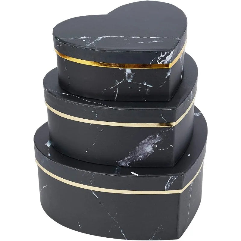 3 Mixed Size Black Heart-Shape Marble Cardboard Boxes Treat Favor Gift Box for Thanksgiving Valentine&
