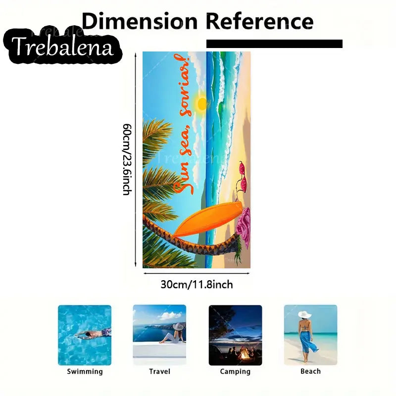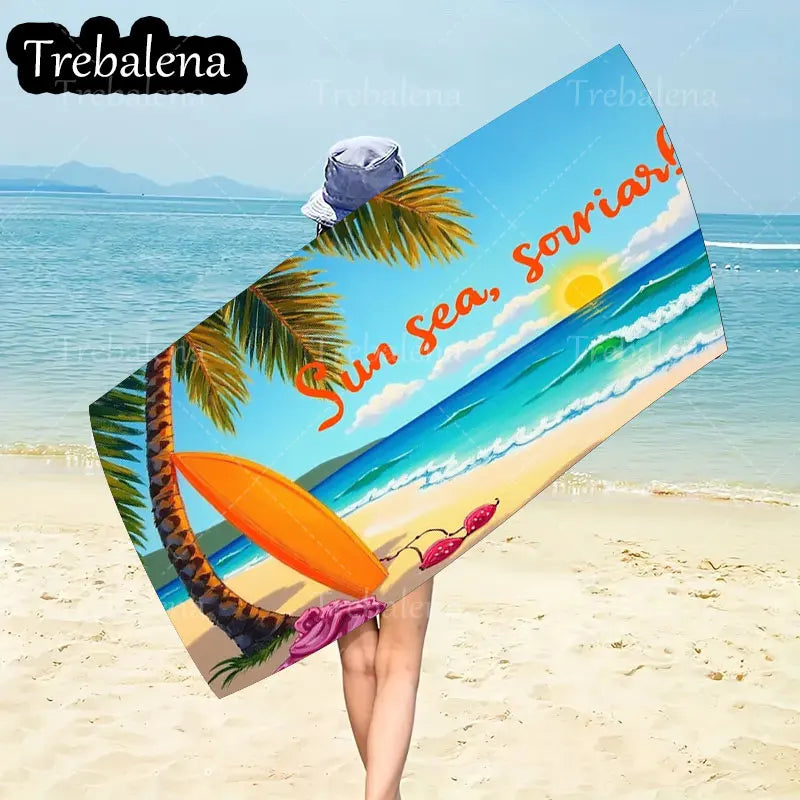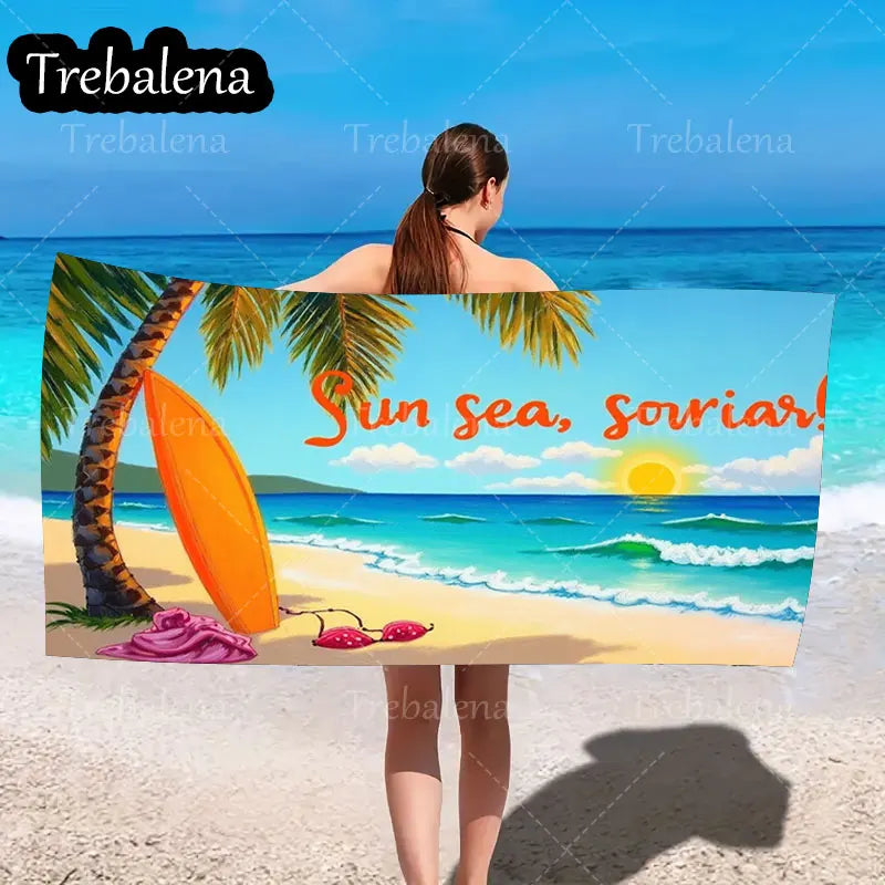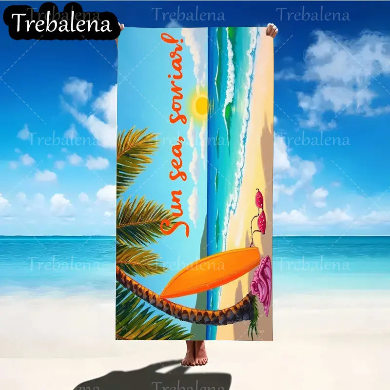30*60inch Ultra-Soft Beach Towel with Sun Sea Smile Beach Towel Palm Surf Style