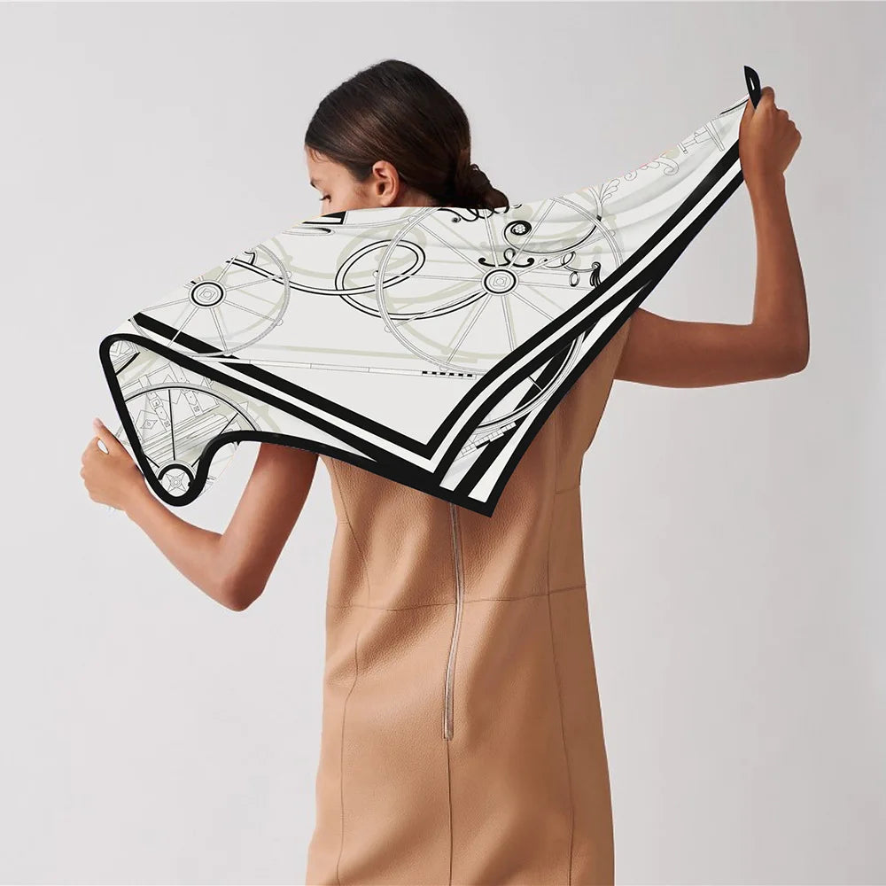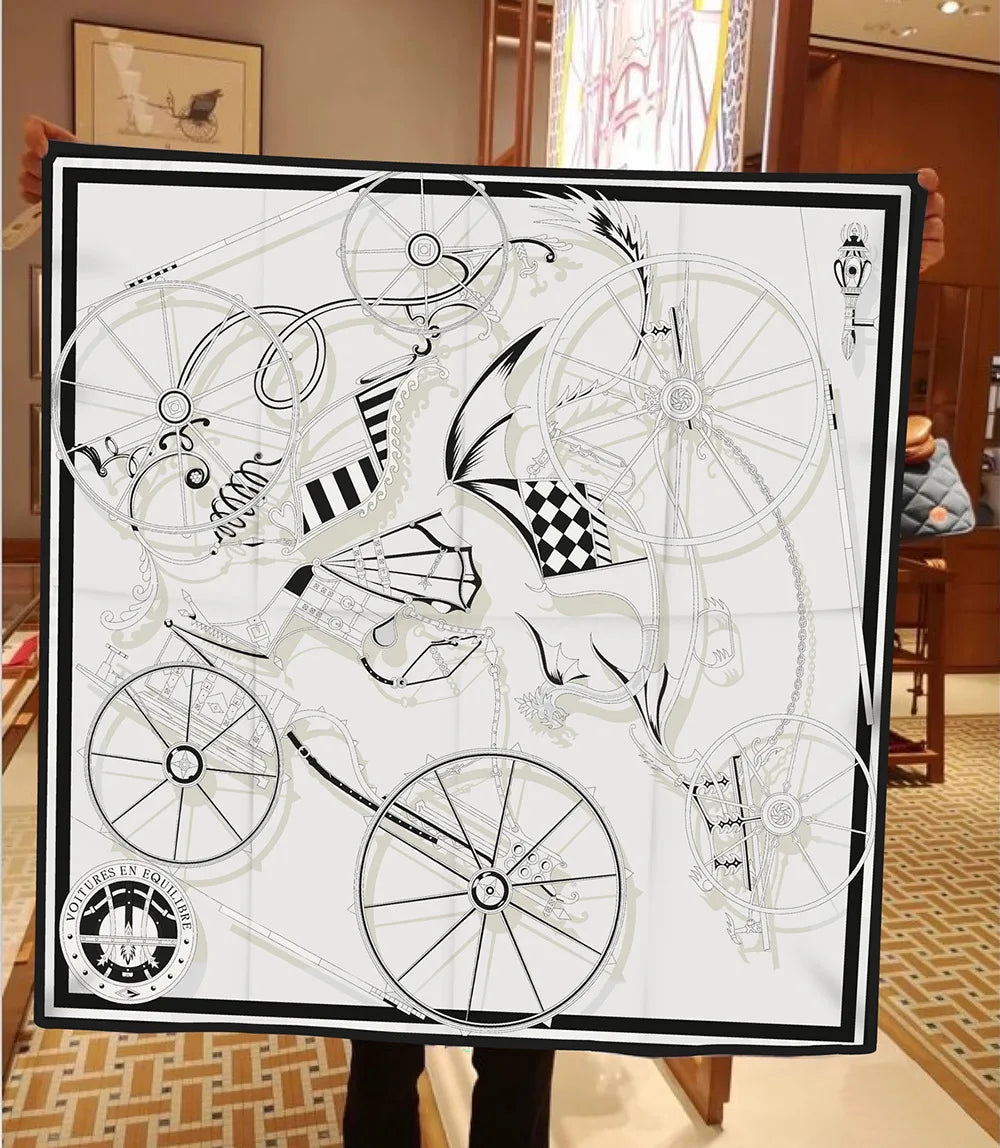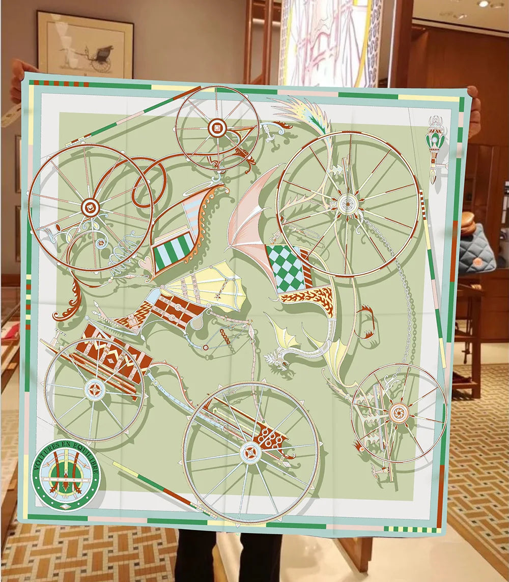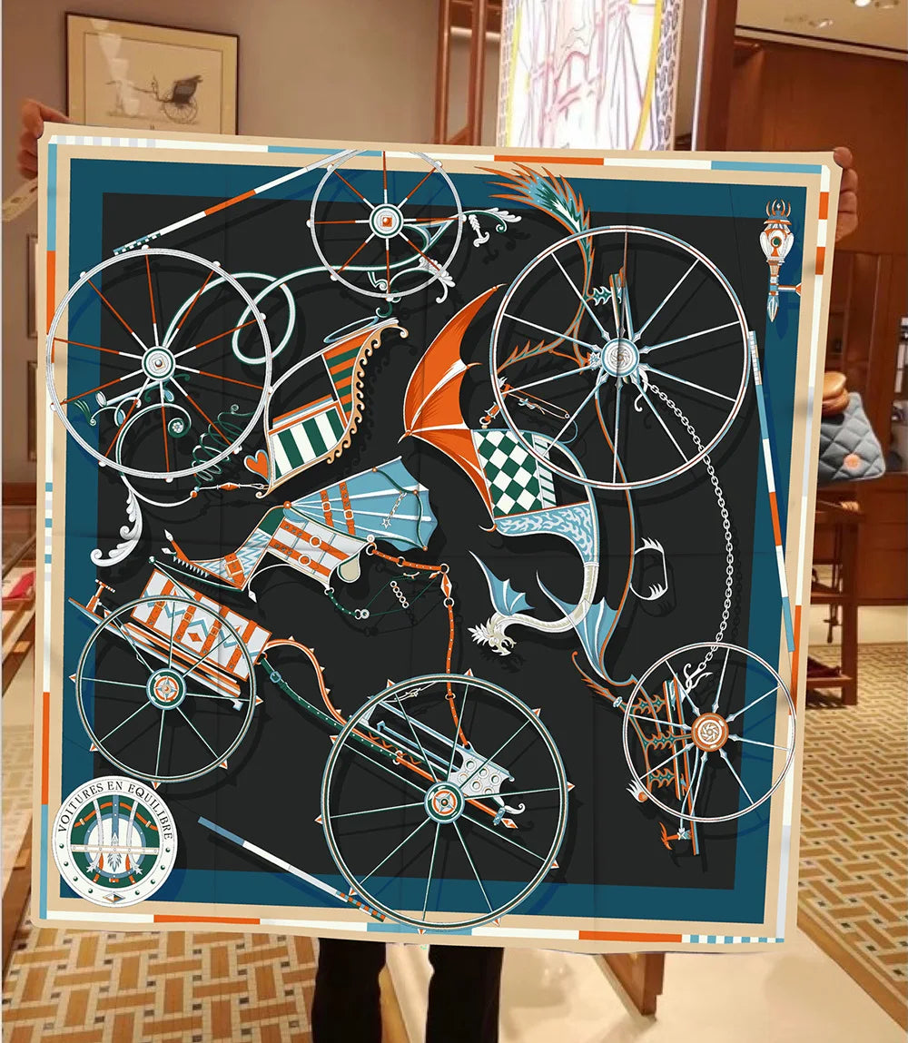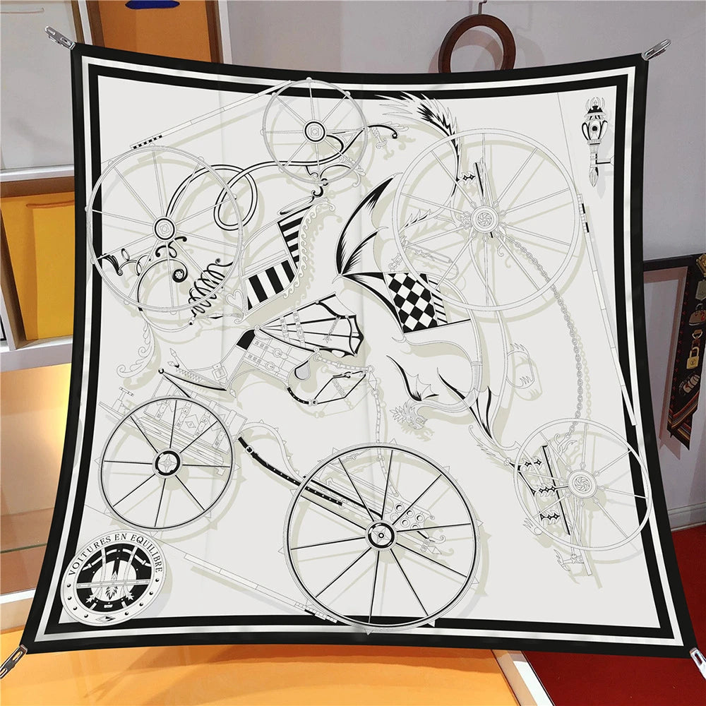90cm New Wheels Brand Square Scarf Women Design Twill Silk Scarf Shawl Hijab Luxury Bandana Fashion Neckerchief Head Scarf - Heavenly shershelle
