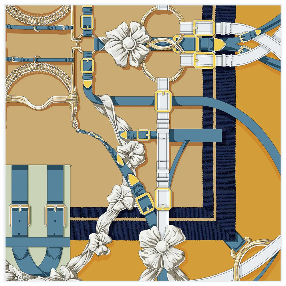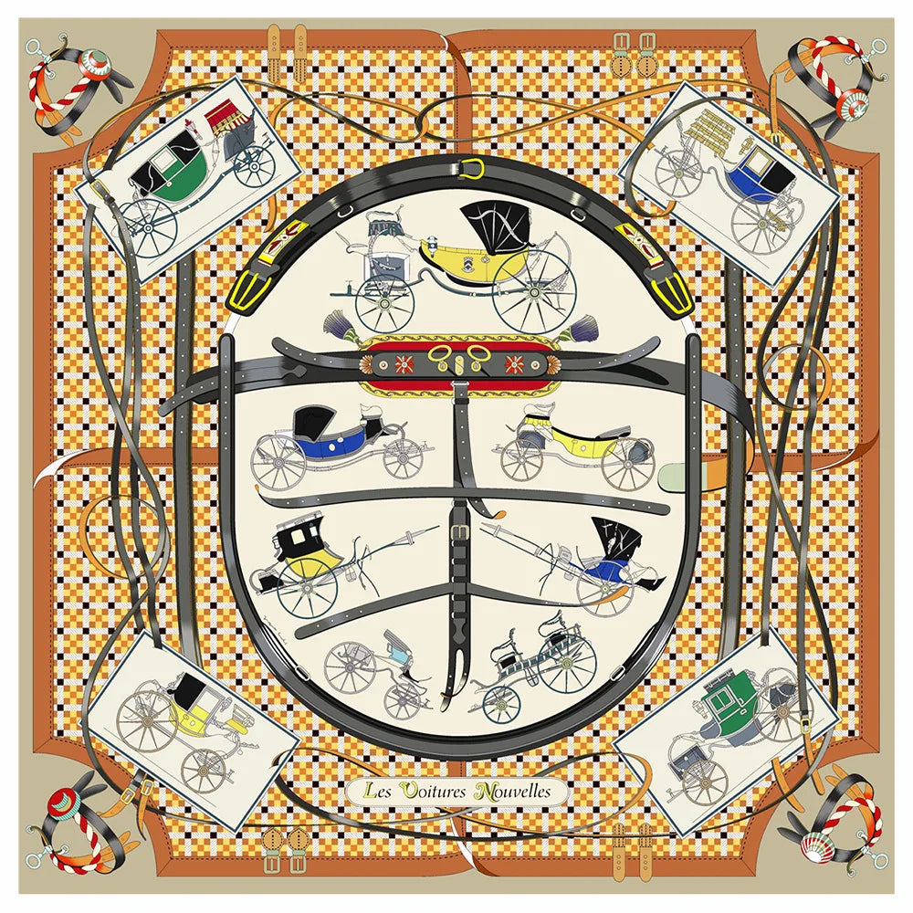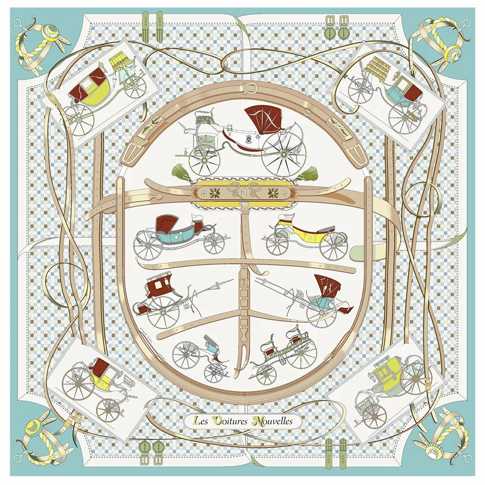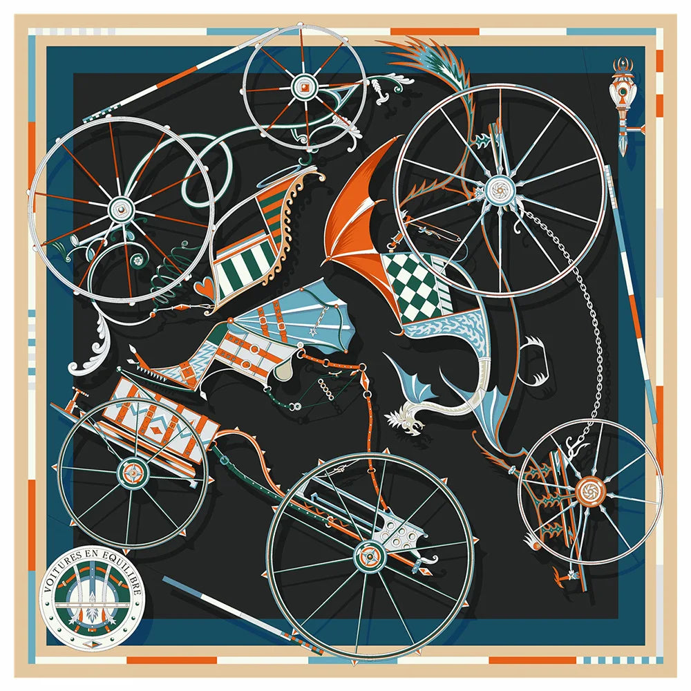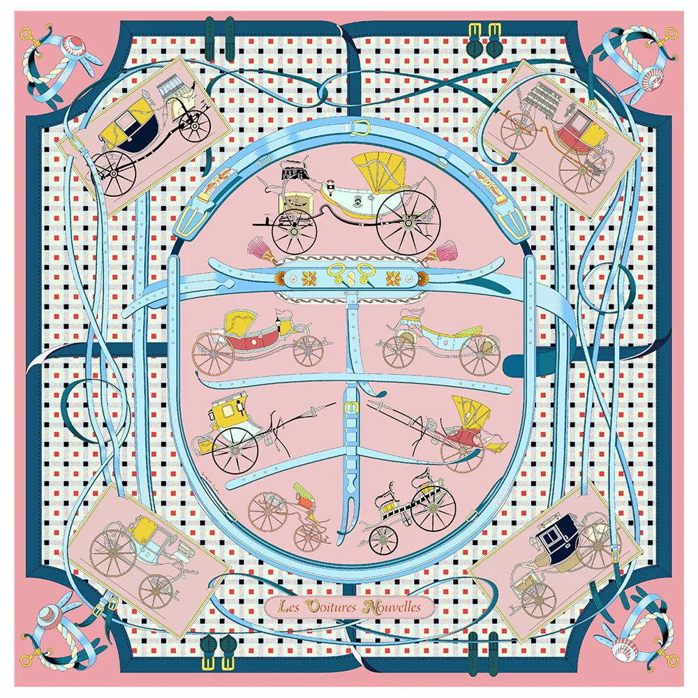 90cm New Wheels Brand Square Scarf Women Design Twill Silk Scarf Shawl Hijab Luxury Bandana Fashion Neckerchief Head Scarf - Heavenly shershelle