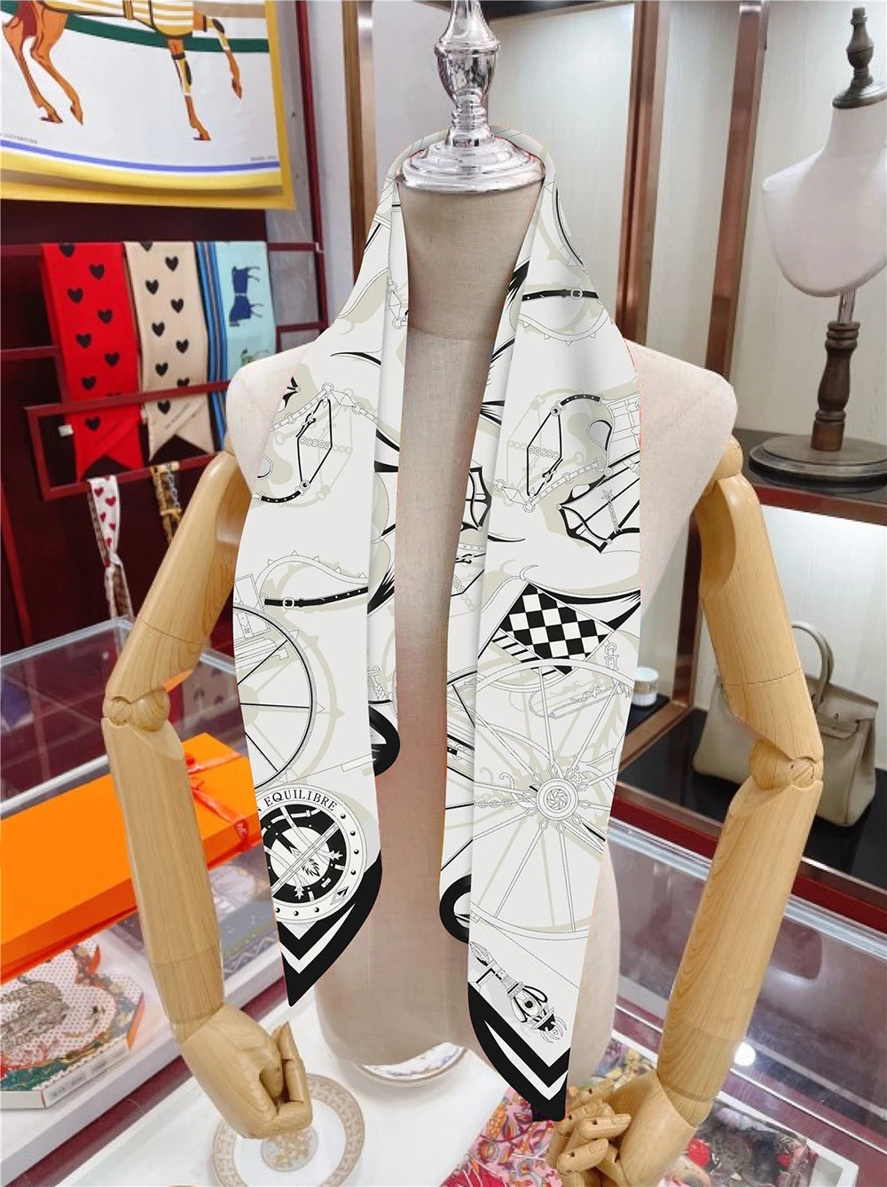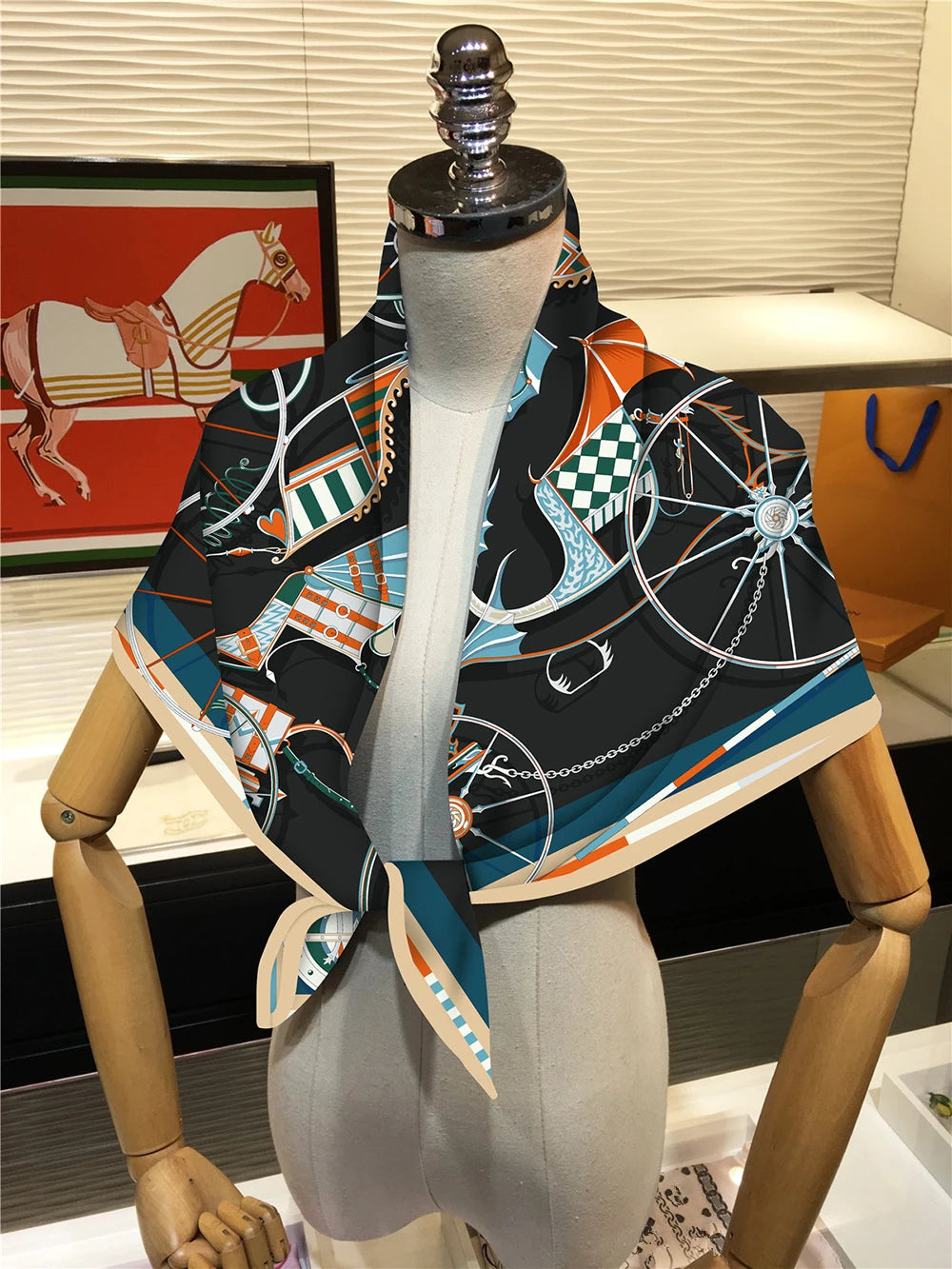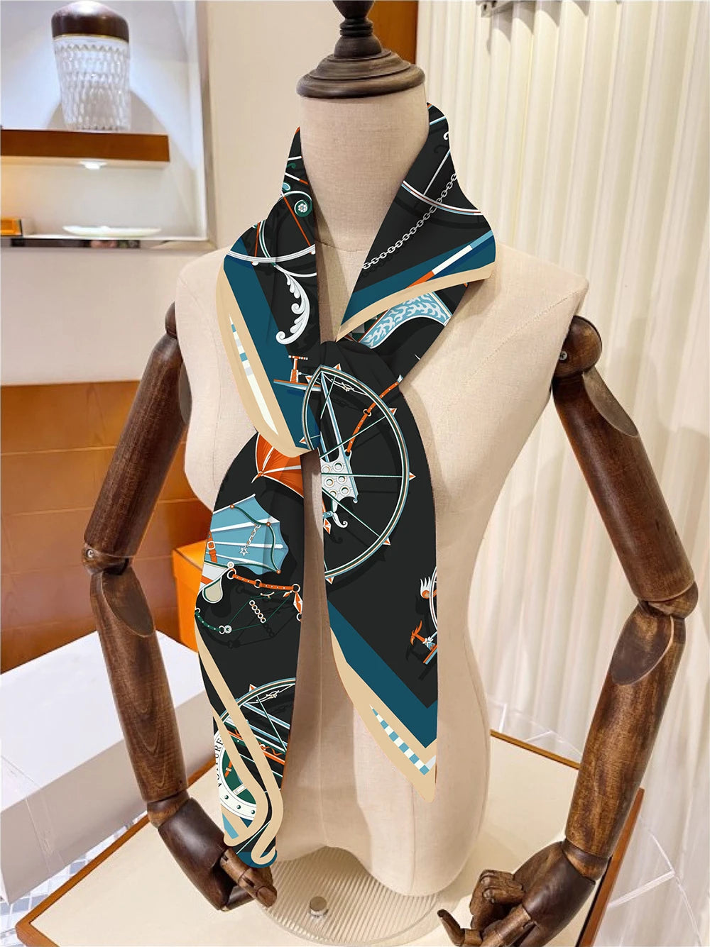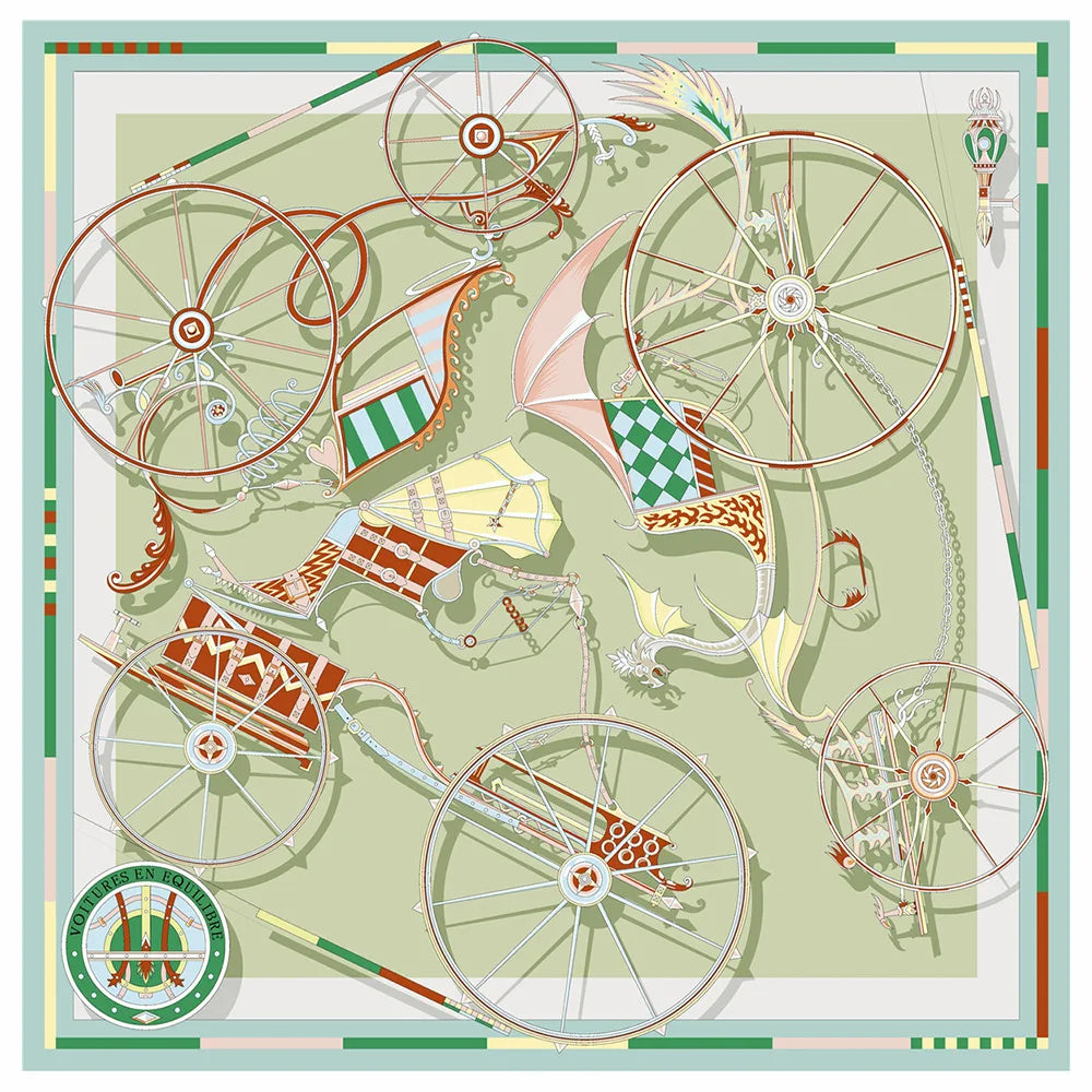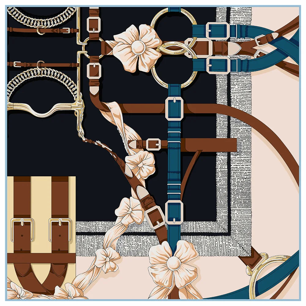 90cm New Wheels Brand Square Scarf Women Design Twill Silk Scarf Shawl Hijab Luxury Bandana Fashion Neckerchief Head Scarf - Heavenly shershelle