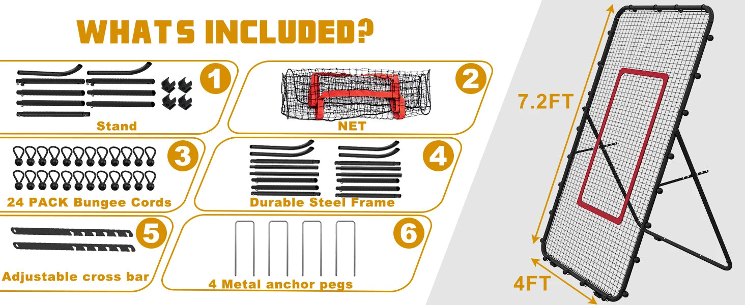 Adjustable 7x4ft Volleyball Net - Multi-Sport Rebounder for Lacrosse/Baseball/Soccer/Tennis, Backyard Hitting & Serving Practice