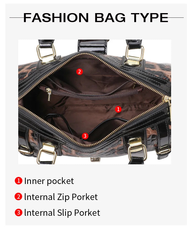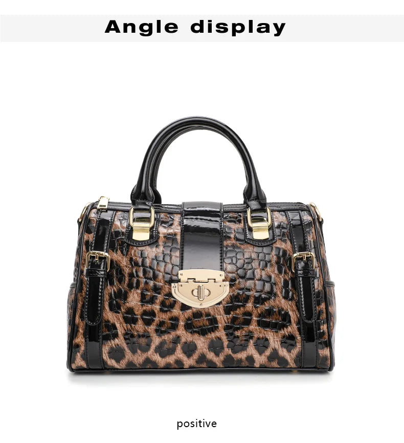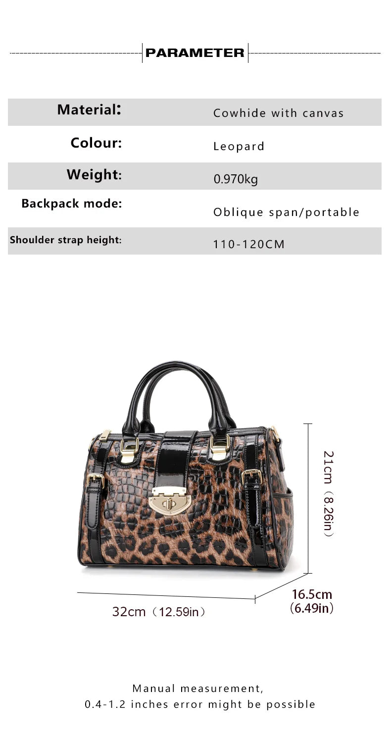 Aidrani Fashionable original design women's handbag, luxurious leopard print Boston bag made of high-quality cowhide