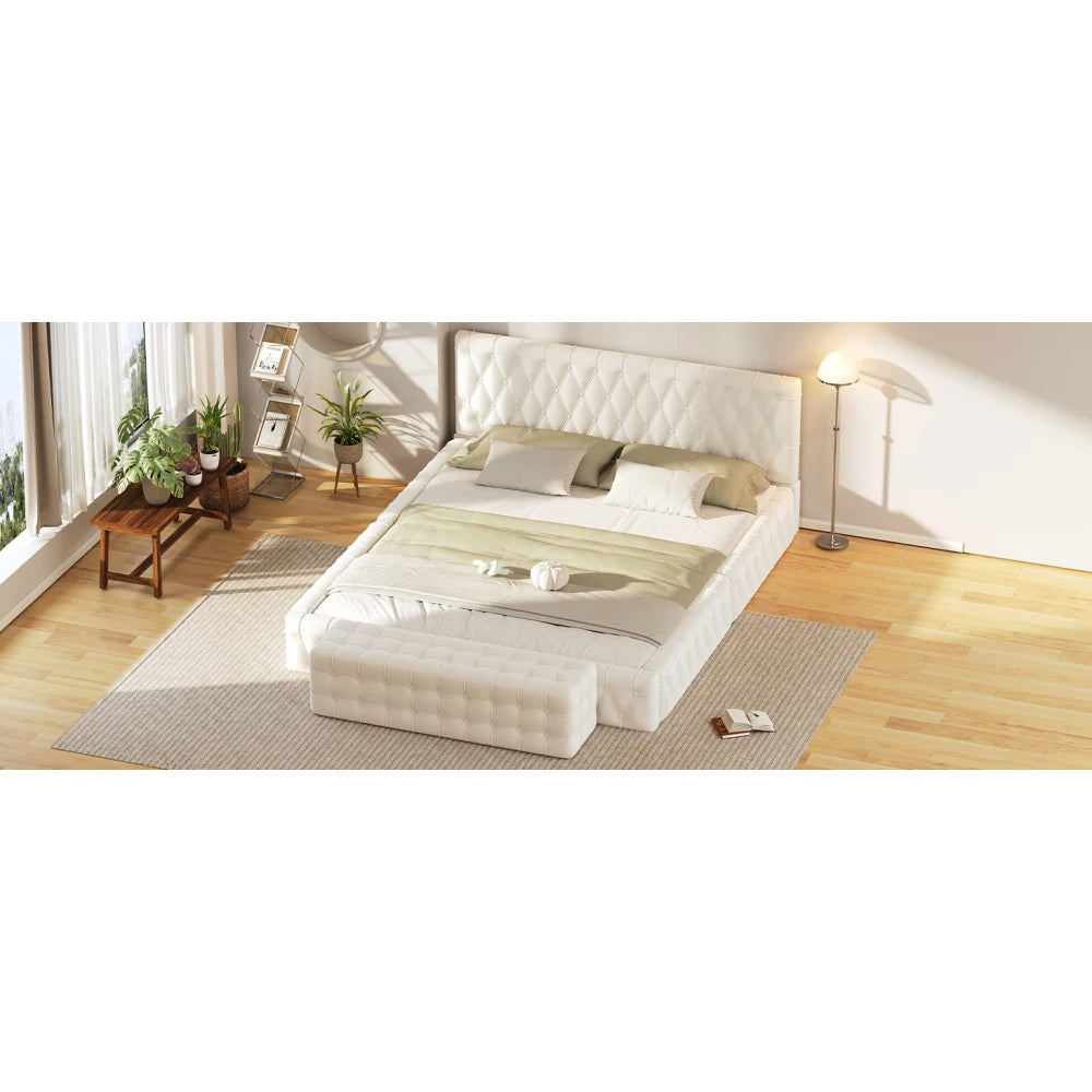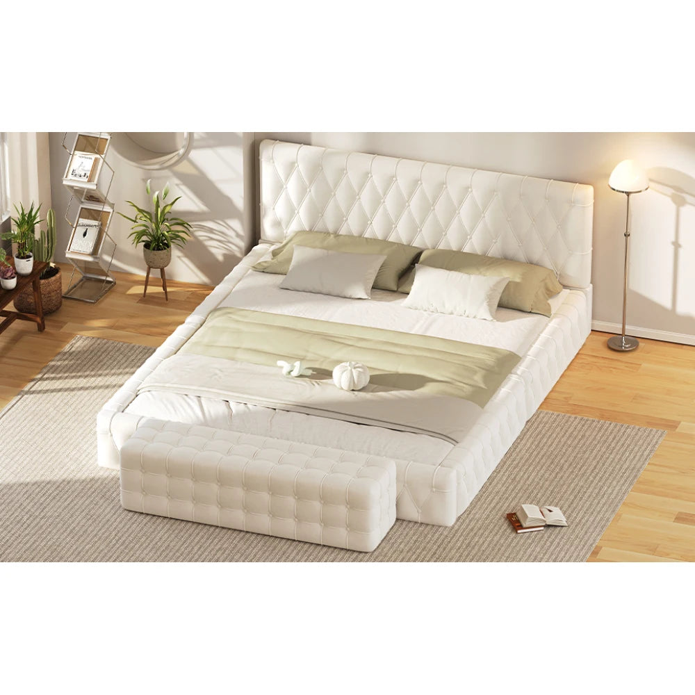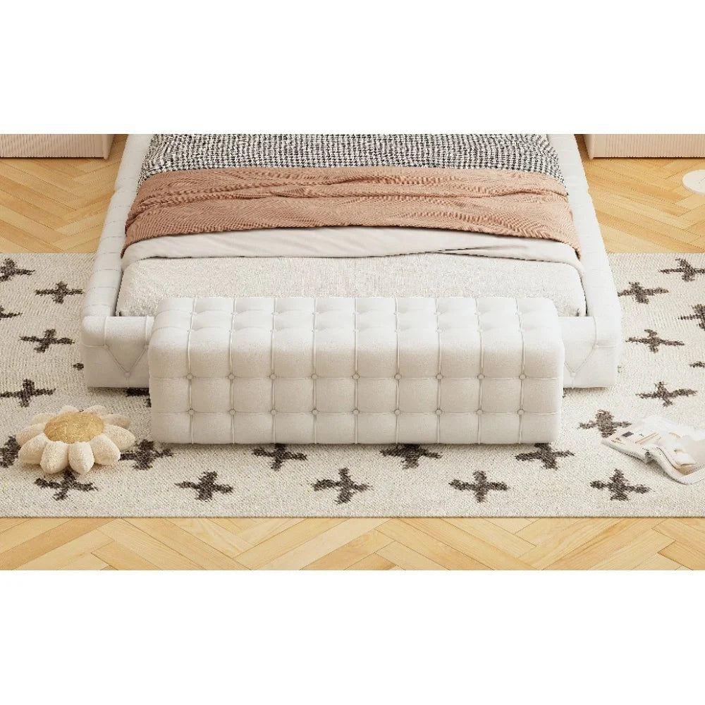 All Covered Velvet Upholstered Ottoman, Rectangular Footstool, White