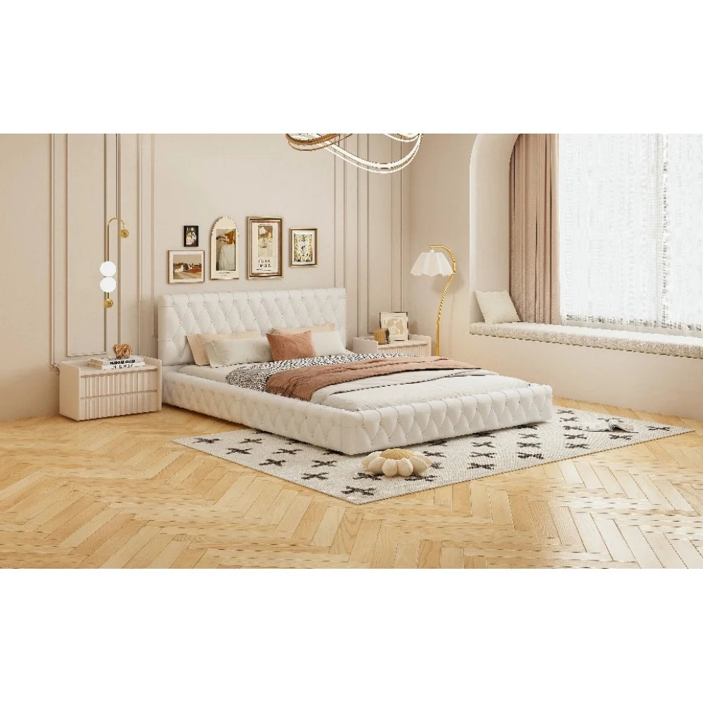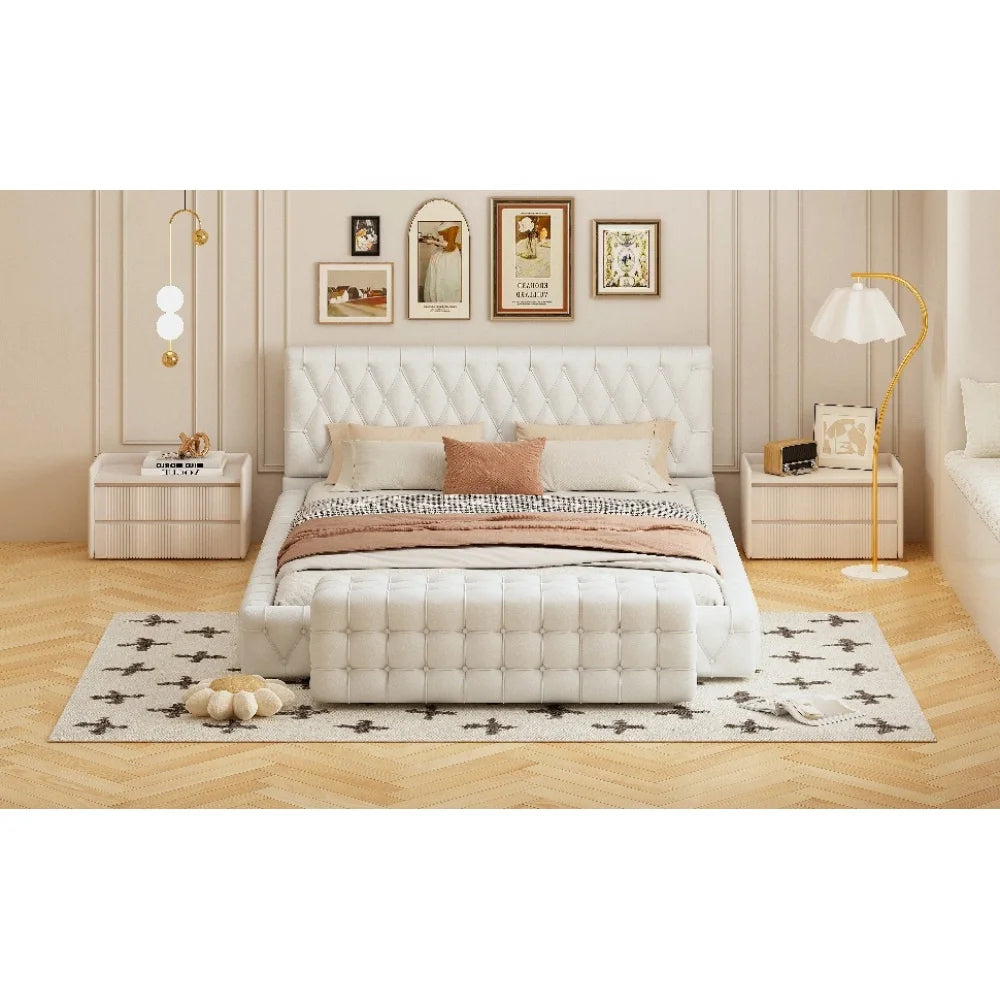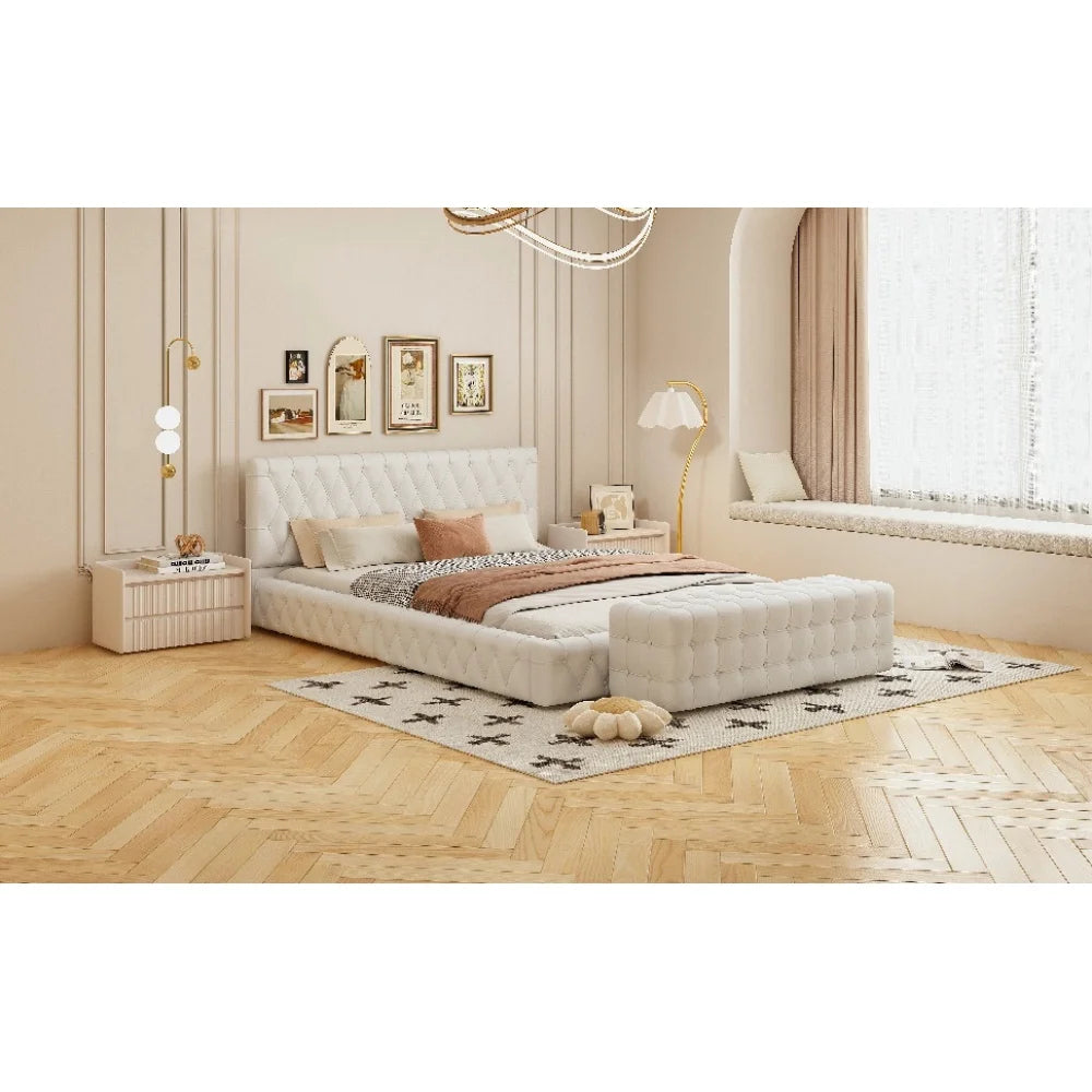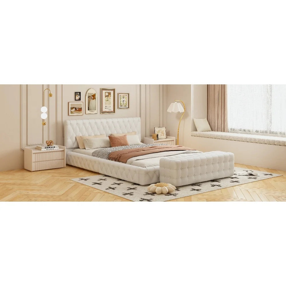 All Covered Velvet Upholstered Ottoman, Rectangular Footstool, White