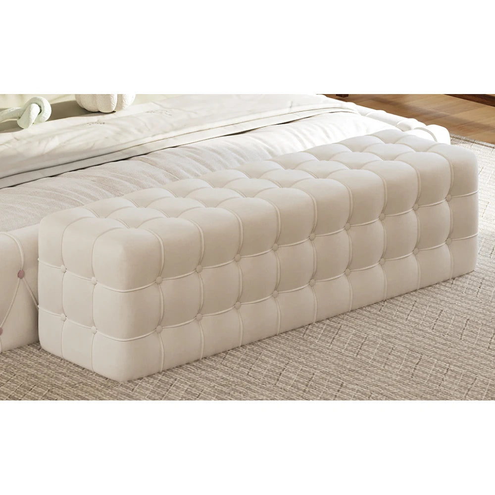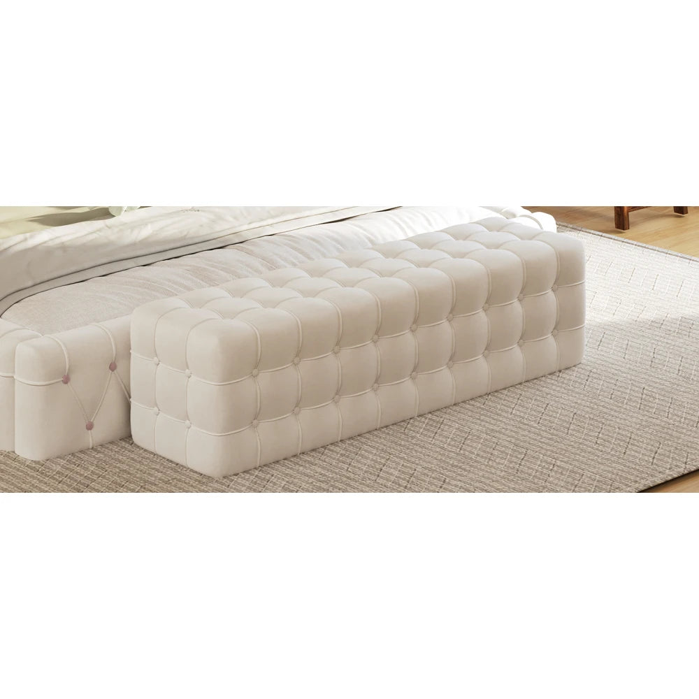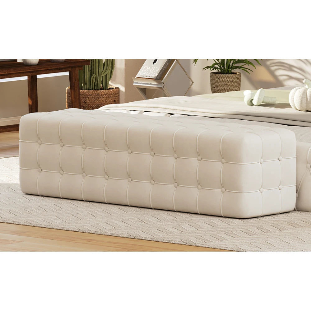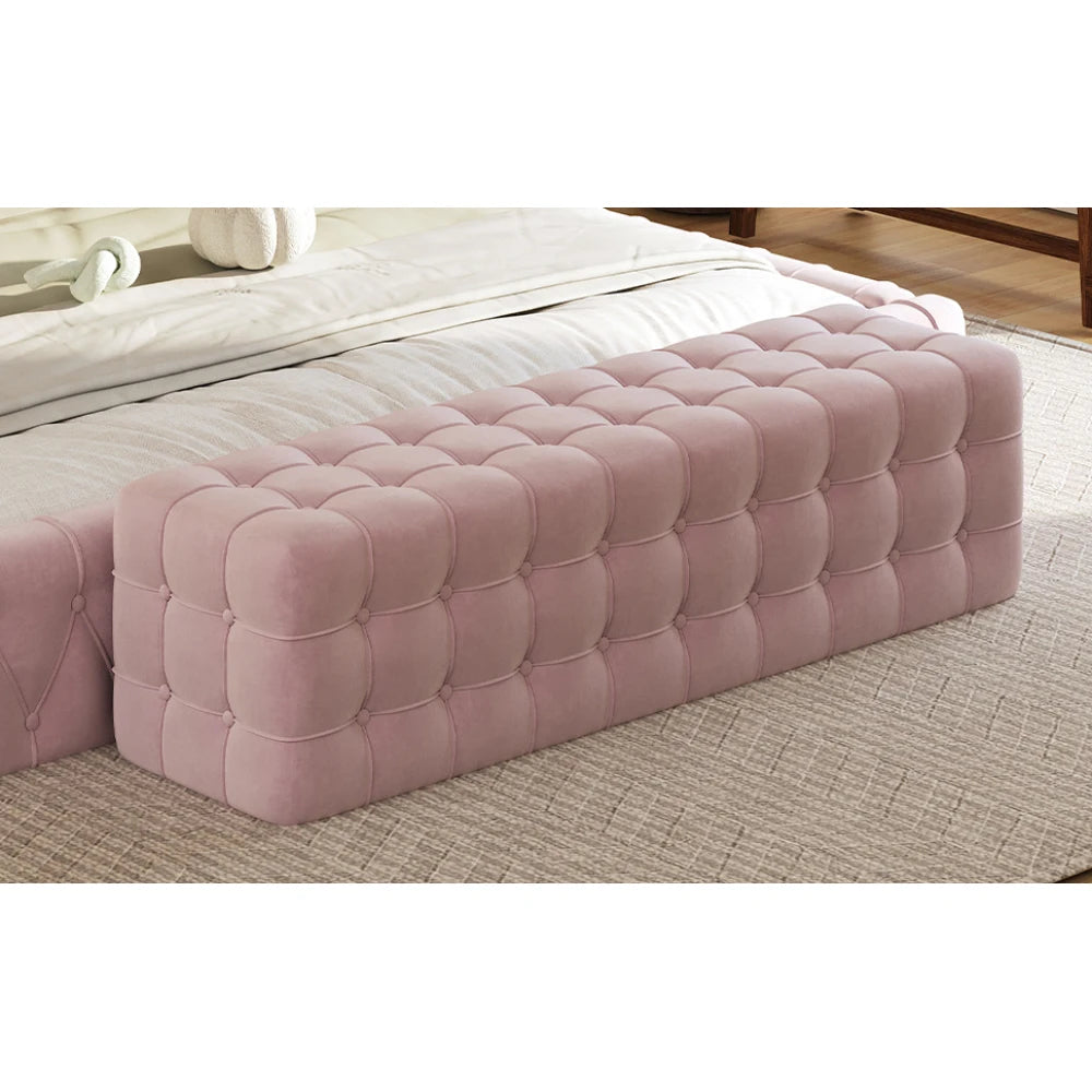 Stylish and minimalist, this footstool adds a touch of elegance to your bedroom. The velvet fabric and foam padding make it comfortable to sit or lean on the footstool, and at 46.3 feet long, it can accommodate two people to sit together for relaxation and conversation with family and friends.