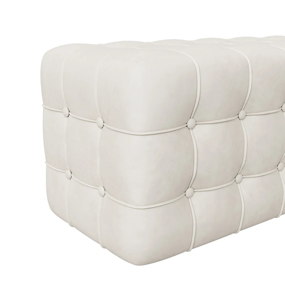 - Tufted Details and Foam Padding:Wrapped in foam padding and velvet fabric on all five sides, this ottoman is comfortable whether you're sitting on it or leaning against it.
