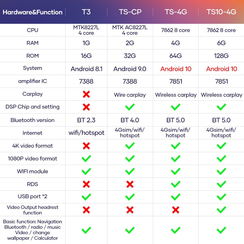 For TS-4G and T3-CP series ,it come with the car-play function.