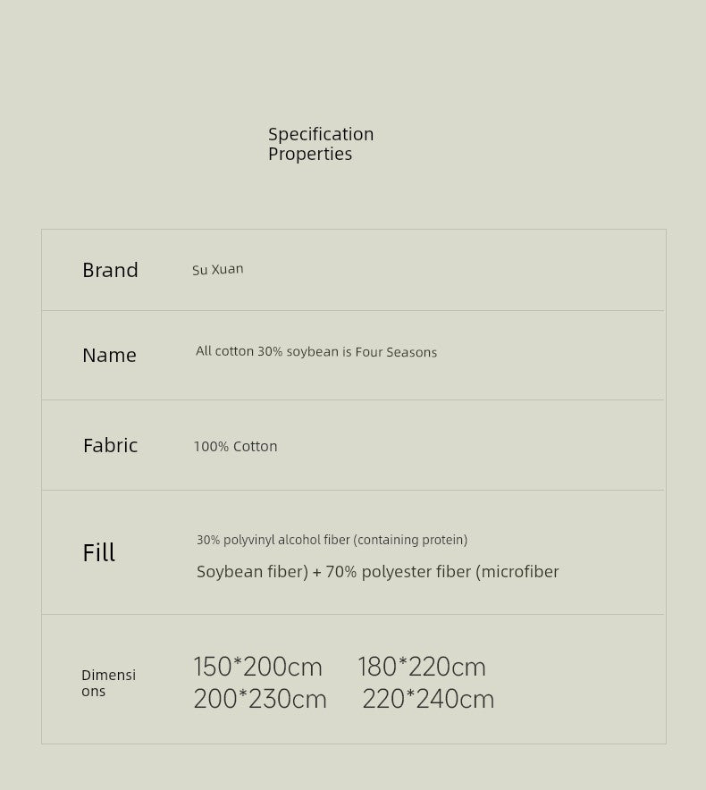 Filled fiber type: 30% soybean fiber + 70% polyester fiber