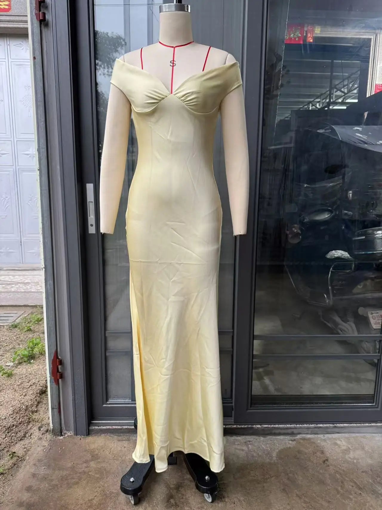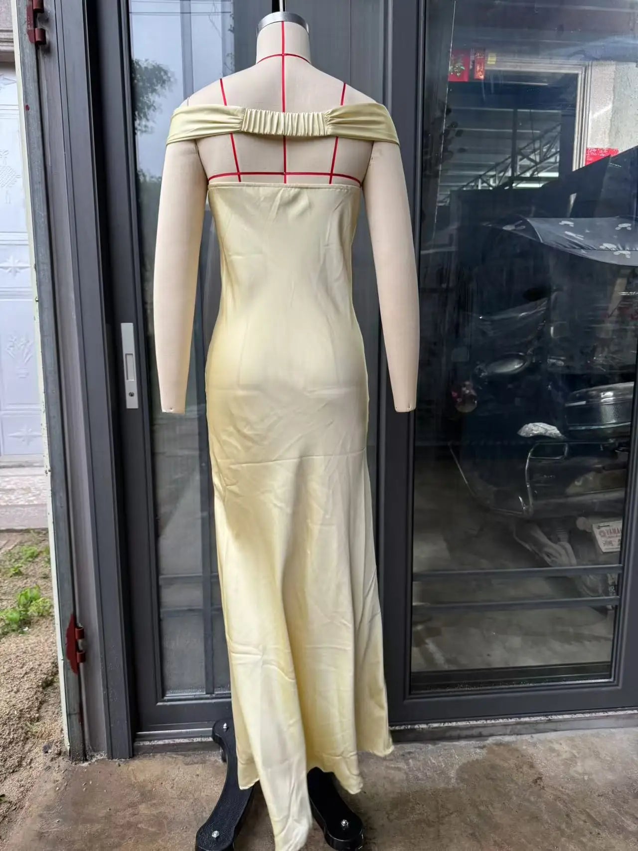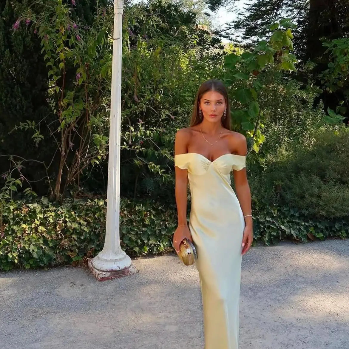 Elegant Satin Backless Party Maxi Dress For Women Fashion Off Shoulder Sleeveless Slim Long Robe 2024 New Lady Chic Evening Gown