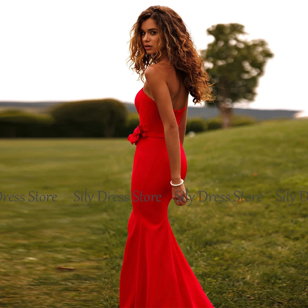 Exquisite Thanksgiving Dresses Jersey Mermaid/Trumpet 2024 Valentine's Day Dress Red Strapless 3D flowers Evening Gown Long