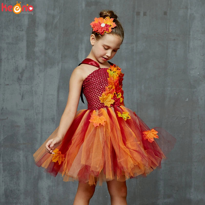 Fall Autumn Girls Tutu Dress Kids Maple Leaves Dress Up Halloween Costume Fancy Birthday Party Carnival Thanksgiving Clothes