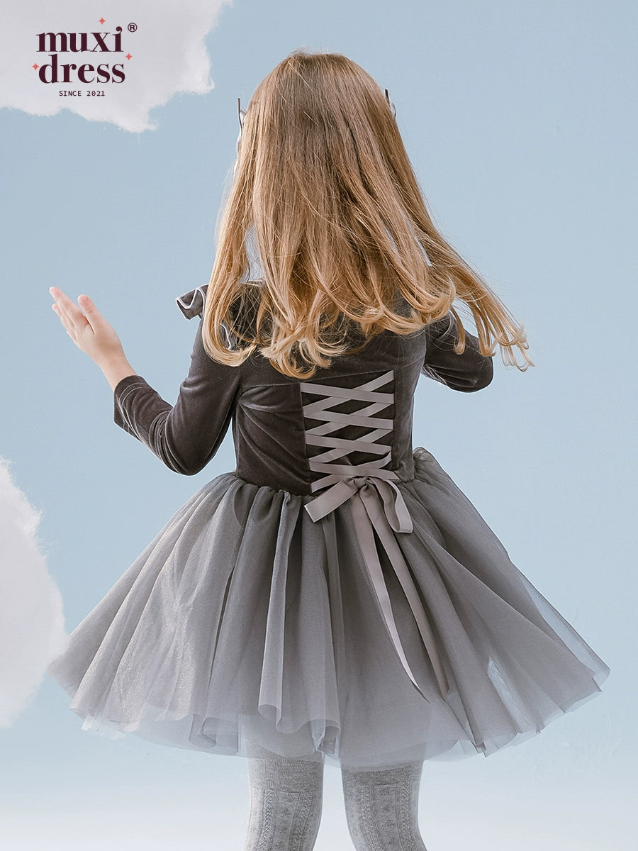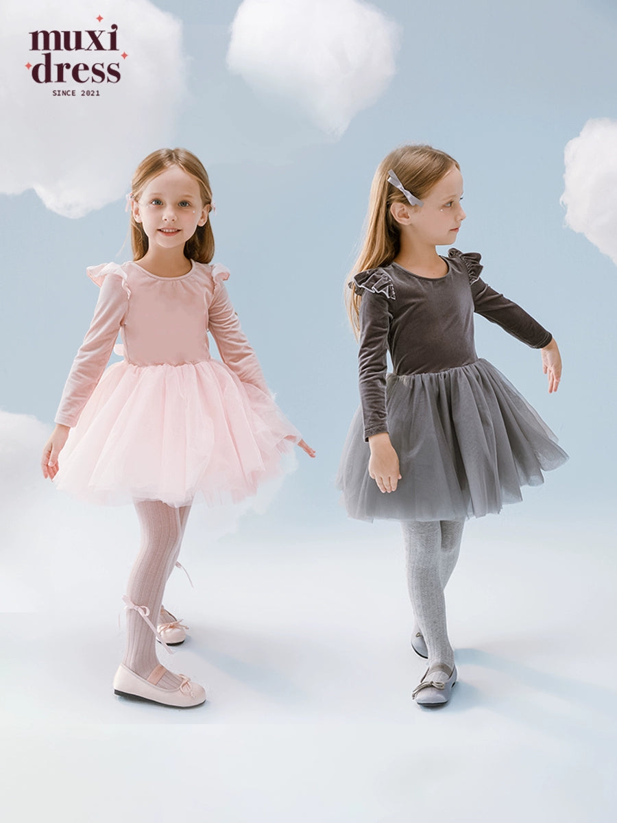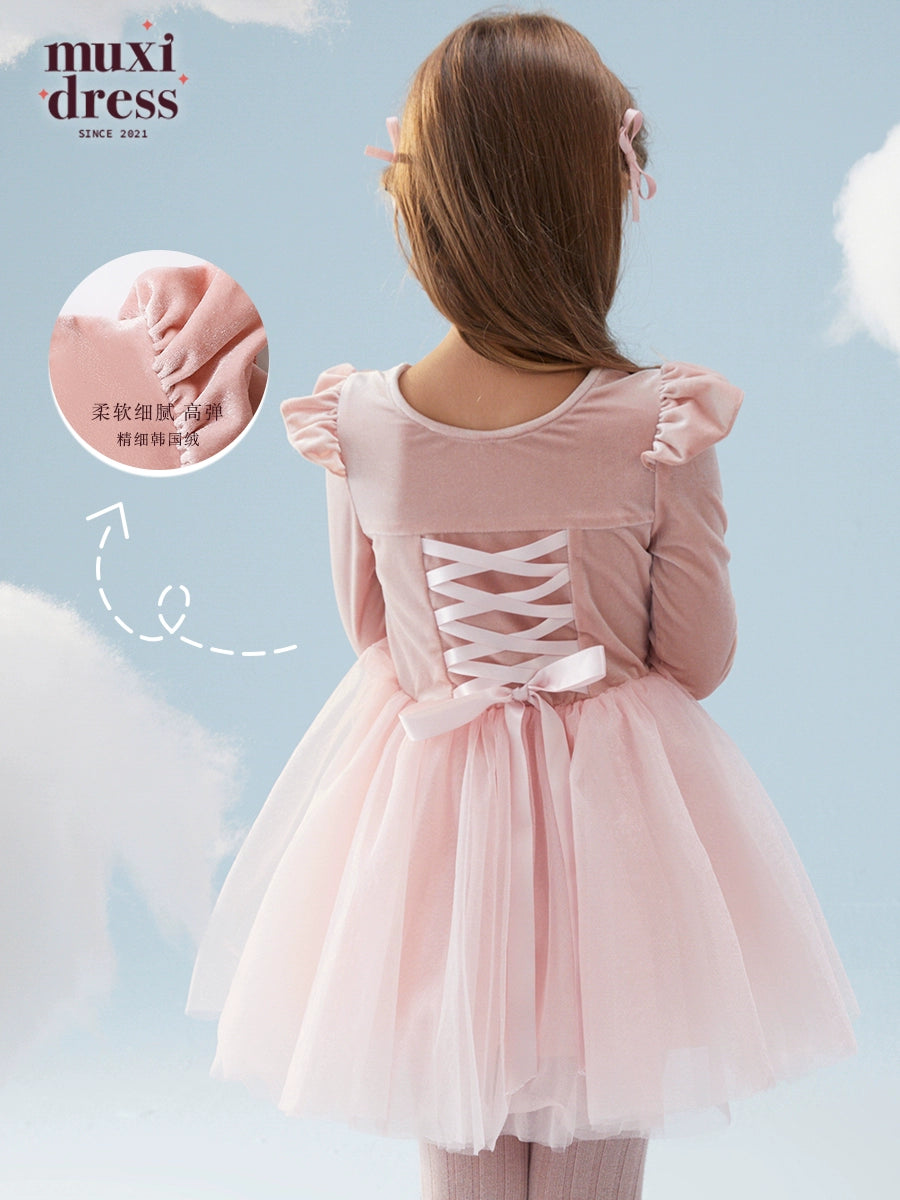 Girls Autumn and Winter Velvet Ballet Style Birthday Dress