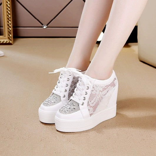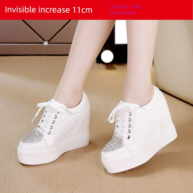 Invisible Hidden Heel 11cm Women's Shoes Autumn and Winter Sports Wedge Shoes Super High Heel Low Ankle Platform Casual Shoes Travel Shoes