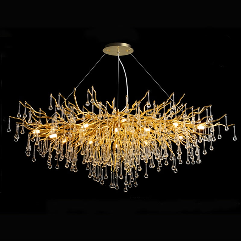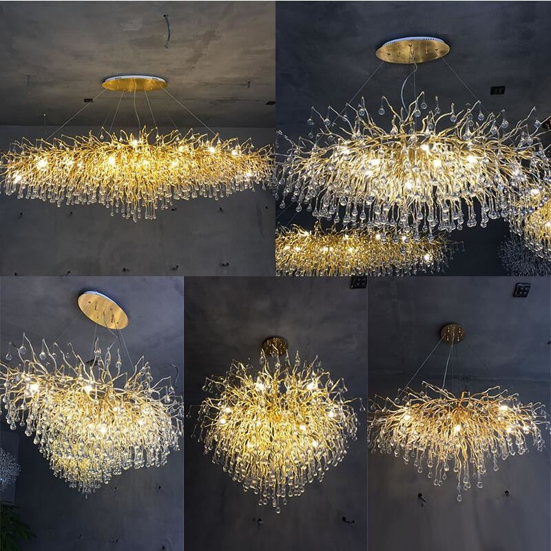 Modern Crystal Chandelier Luxury Golden Branch Crystal Chandelier Living Room Hotel Lobby Island Decoration Light