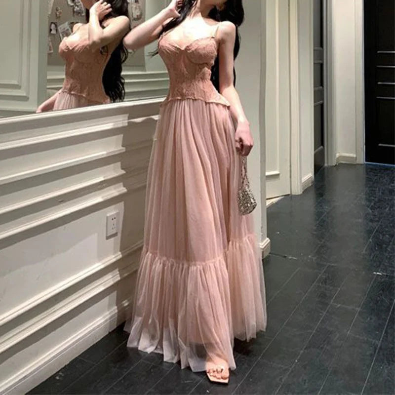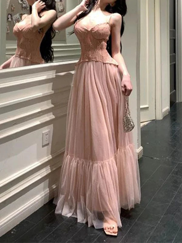 plus Size Lace Splice ter Dr Women's Slimming Long Summer Dr Ele Design Single Piece oulder Strap Gown