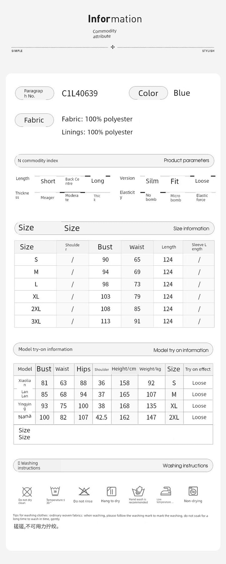 Clothing style details: Solid color