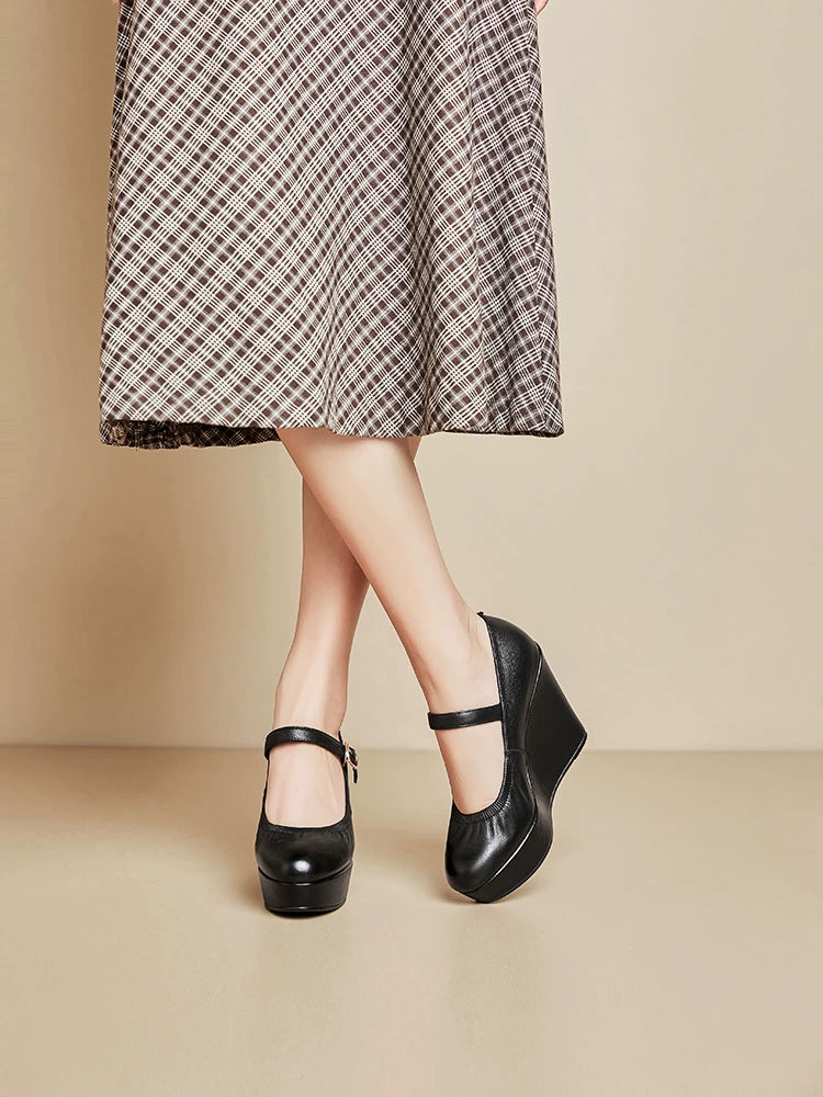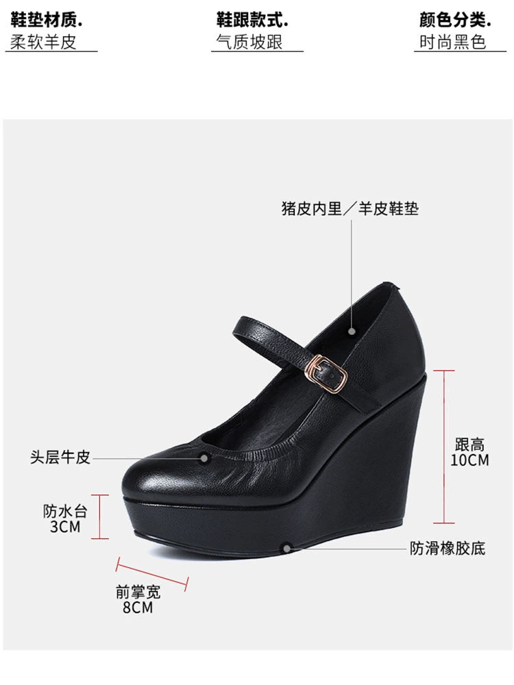 Thick Sole round Toe Wedge Soft Surface Waterproof Platform Strap
