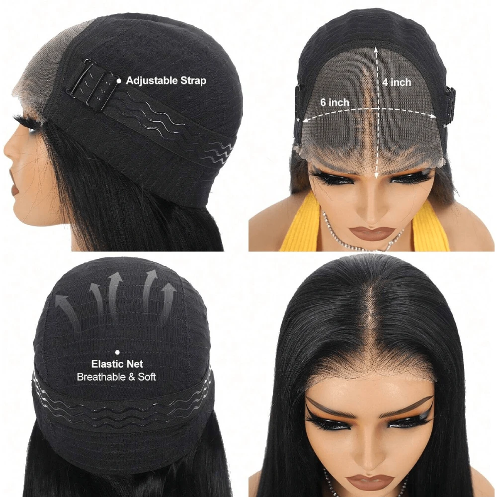 Wear Go 6X4 Glueless Human Hair Wig Transparent Lace Closure Wig Ready To Wear Pre Plucked Pre Cut Lace Wig Without Glue And Gel